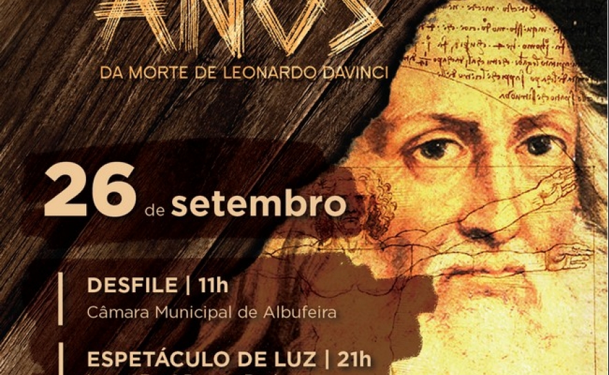 O Município de Albufeira decidiu associar-se às Comemorações dos 500 anos da Morte de Leonardo da Vinci com um espetáculo evocativo, que vai decorrer, no próximo dia 26 de setembro, com o objetivo de dar a conhecer, sob a forma deuma intervenção cultural com forte pendor pedagógico, aquele que foi o maior Mestre do Renascimento Europeu.