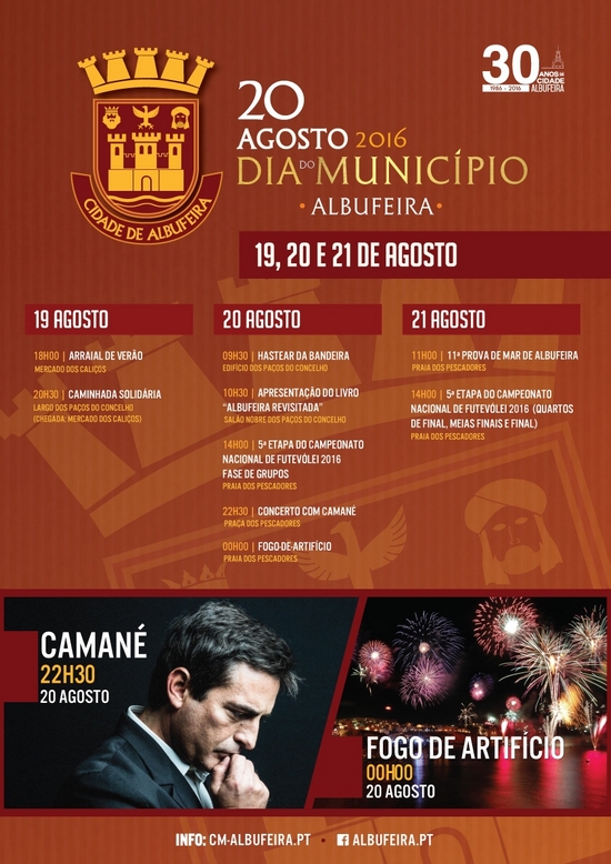 O programa do Dia do Município continua com a disputa da 5ª Etapa do Campeonato Nacional de Futevólei 2016, que irá juntar na Praia dos Pescadores as principais figuras da modalidade. Serão 14 duplas a protagonizar um espetáculo único e a mostrar o que valem nesta praia emblemática, já com tradição no que diz respeito aos pontos altos do Futevólei Nacional. A fase de grupo será disputada no dia 20 e as finais no dia 21 de agosto, ambas às 14h00.