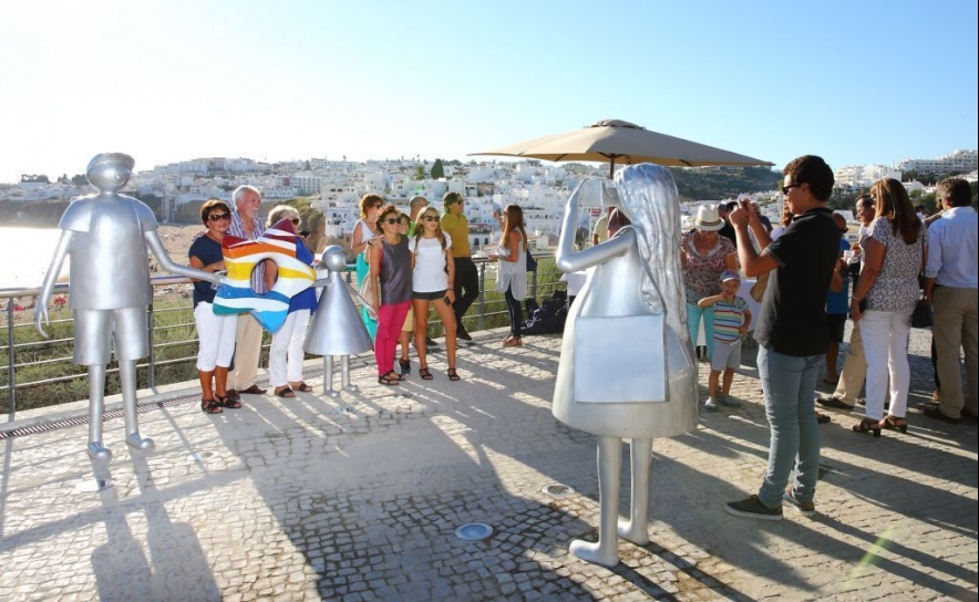 Quem chega ao miradouro do Pau da Bandeira para avistar um dos cartões-de-visita da cidade- a famosa Praia dos Pescadores- pode, agora, registar o momento na companhia de uma família de turistas sorridentes e felizes que, desde a passada terça-feira, passaram a fazer parte daquele local.