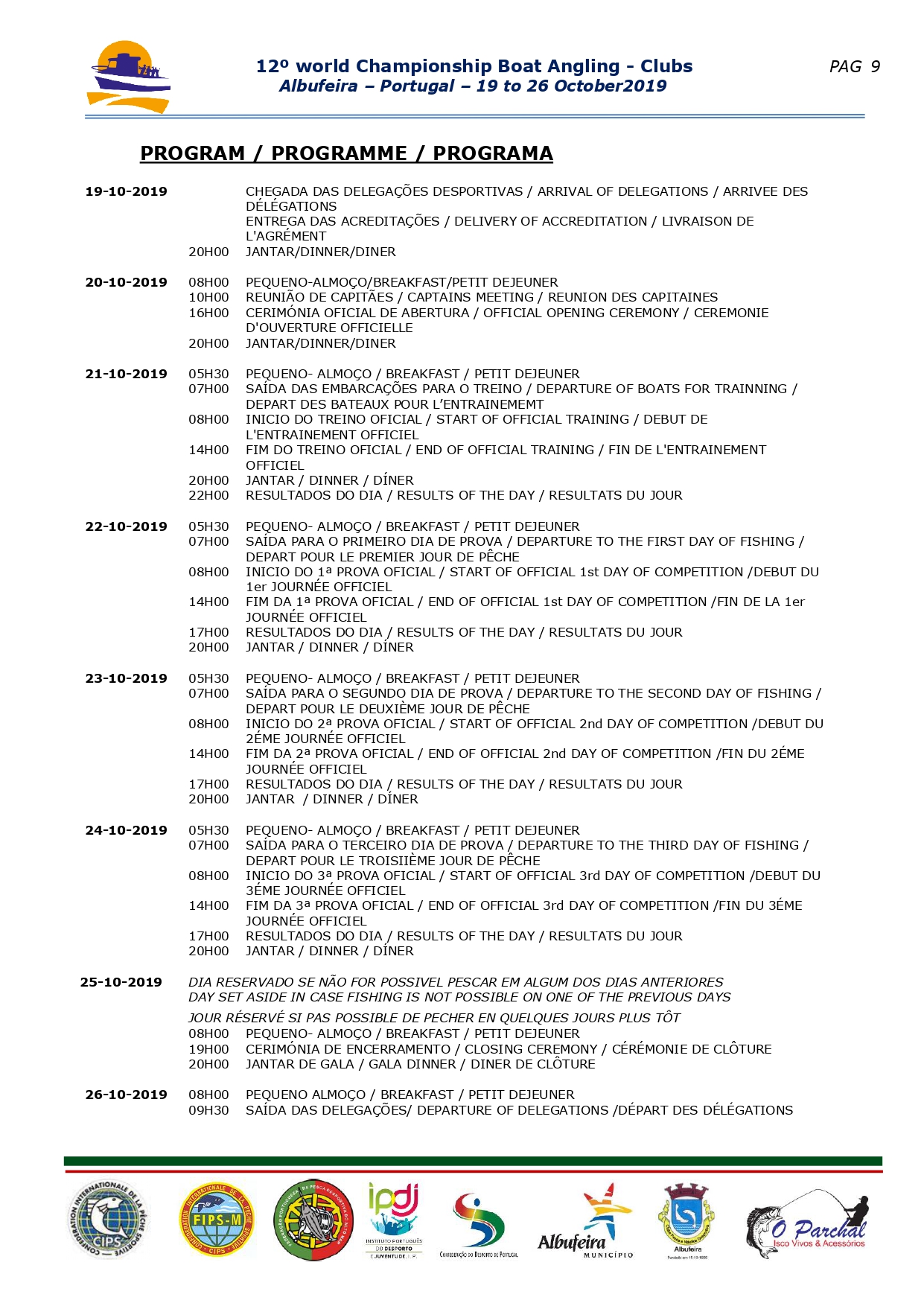 «Albufeira dispõe de todas as condições para a organização destes eventos caracterizando-se pela riqueza da sua fauna, condições atmosféricas estáveis e um bom conjunto de embarcações dotadas de tripulações muito experientes», elogiou Carlos Vinagre, presidente da FPPDAM. O dirigente esclareceu que além da competição irá decorrer «um programa social para que as comitivas possam conhecer e desfrutar da cidade de Albufeira e da beleza da região”.