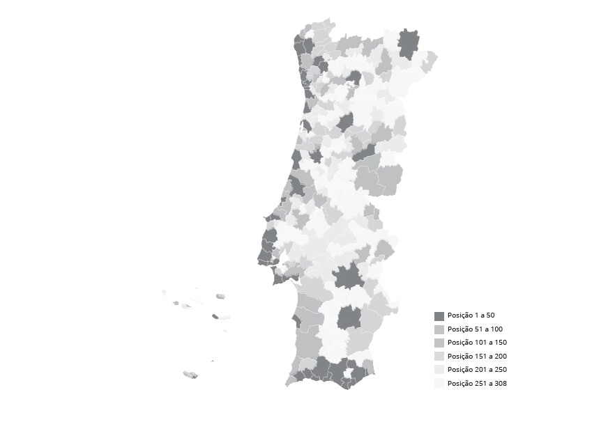 O Norte de Portugal está representado por 5 municípios, sendo o Porto o que melhor posição obteve desta região com o 4º Lugar. Portugal insular está representado por 2 municípios da Madeira e um dos Açores, sendo o Funchal o melhor classificado com a 2ª posição.