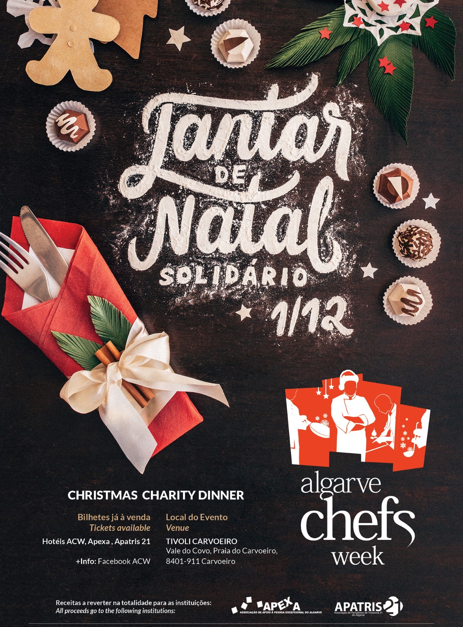 A Algarve Chefs Week, certame gastronómico anual que reúne chefs de diversos hotéis de luxo do Algarve para dar a provar os sabores da região em prol de uma instituição social, prepara um Jantar Solidário de Natal no Tivoli Carvoeiro, a realizar no dia 1 de dezembro pelas 20 horas.