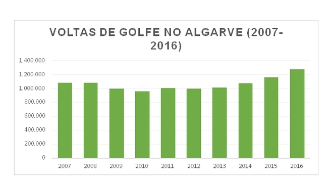 O golfe é um produto turístico de extrema relevância para o Algarve no combate à sazonalidade do turismo balnear. Atualmente existem cerca de 40 campos de golfe dispersos pela região com diferentes características, sendo possível praticar a modalidade ao longo de todo o ano. Em 2016 foram registadas cerca de 1,3 milhões de voltas de golfe, o que correspondeu a um aumento de 10,5 por cento em relação ao ano anterior. Os meses de outubro (161 mil voltas) e abril (148 mil) são os mais procurados pelos golfistas no destino. Fevereiro (+23,0%) e abril (+19,8%) registaram as maiores subidas relativamente a 2015.