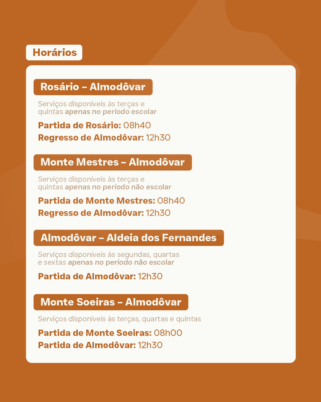 Circuitos e Horários no Concelho de Almodôvar