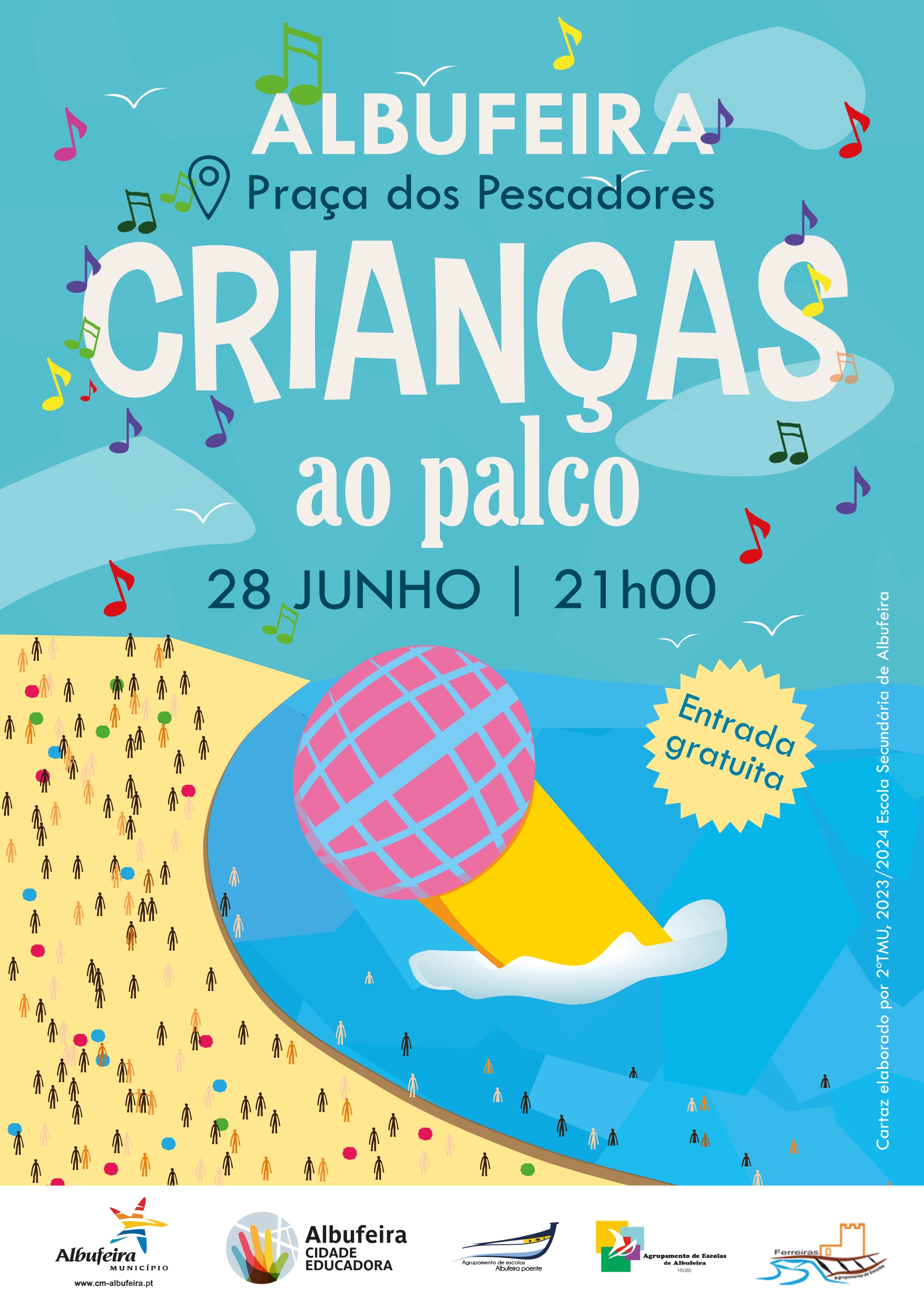 Sob o lema Educar a Cantar, o programa “Crianças ao Palco” visa promover a prática vocal musical de todas as crianças do 1.º ciclo da rede pública do concelho de Albufeira através da sua audição em contexto de sala de aula, como forma de avaliar as aptidões vocais e performativas dos alunos e selecionar as melhores vozes, que irão participar num espetáculo final aberto à comunidade, a realizar no próximo dia 28 de junho, pelas 21h00, na Praça dos Pescadores.