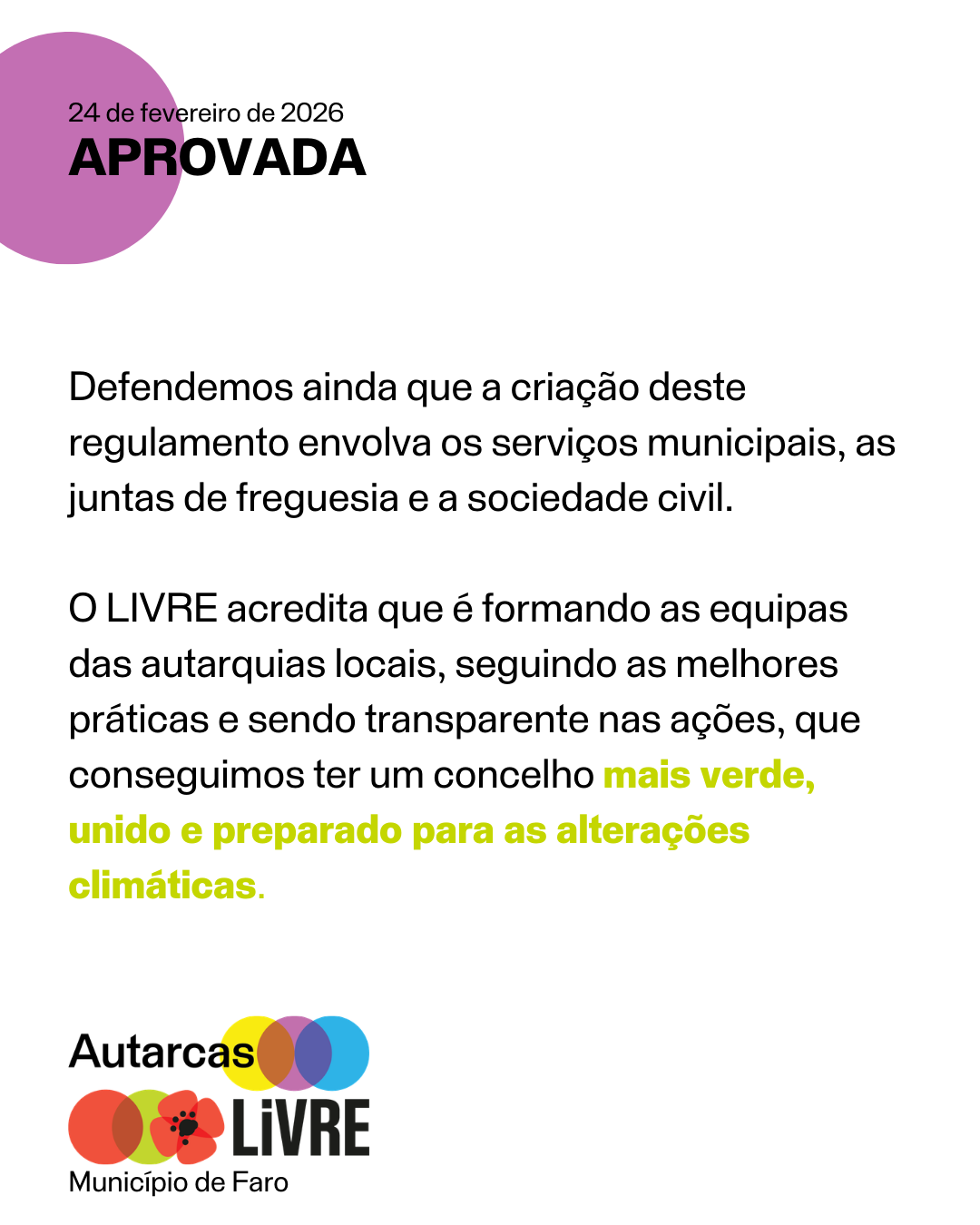 O LIVRE acredita que é formando as equipas das autarquias locais, seguindo as melhores práticas e sendo transparente nas ações, que conseguimos ter um concelho mais verde, unido e preparado para as alterações climáticas.