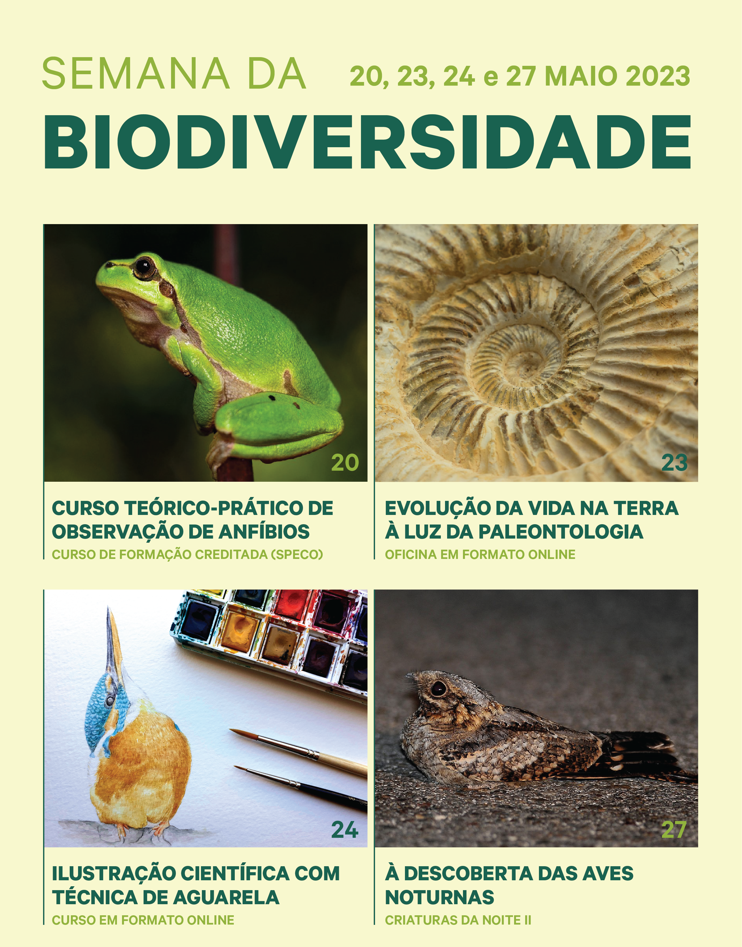 - 24 de maio (4ª-feira), das 16h00 às 20h00 - Oficina de Ilustração Científica - Técnica da Aguarela (Formato On-line), com Ana Rita Afonso, no âmbito da comemoração do Dia Europeu dos Parques. Local: Plataforma On-line ZOOM. Inscrições limitadas a um máximo de 12 Participantes: <https://forms.gle/hzSgdy5Uajye2wUY7>;