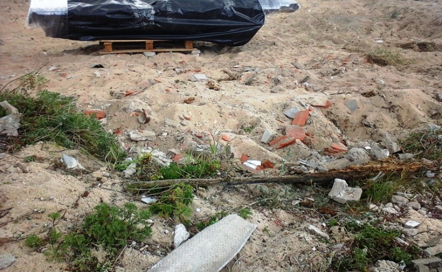 A forma como está a ser feito o derrube das casas, com auxílio de maquinaria pesada, garante certamente uma maior celeridade de processos mas implica a produção de uma enorme quantidade de entulho miúdo que não chega a ser recolhido, ficando espalhado pela areia.
