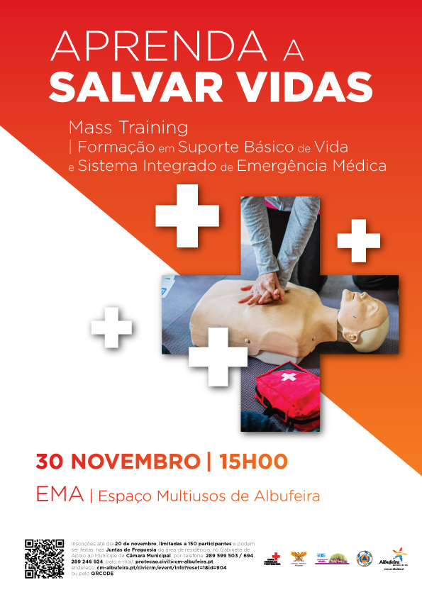 No próximo dia 30 de novembro (sábado), pelas 15h00, realiza-se no EMA – Espaço Multiusos de Albufeira uma ação de formação sobre Suporte Básico de Vida e Sistema Integrado de Emergência