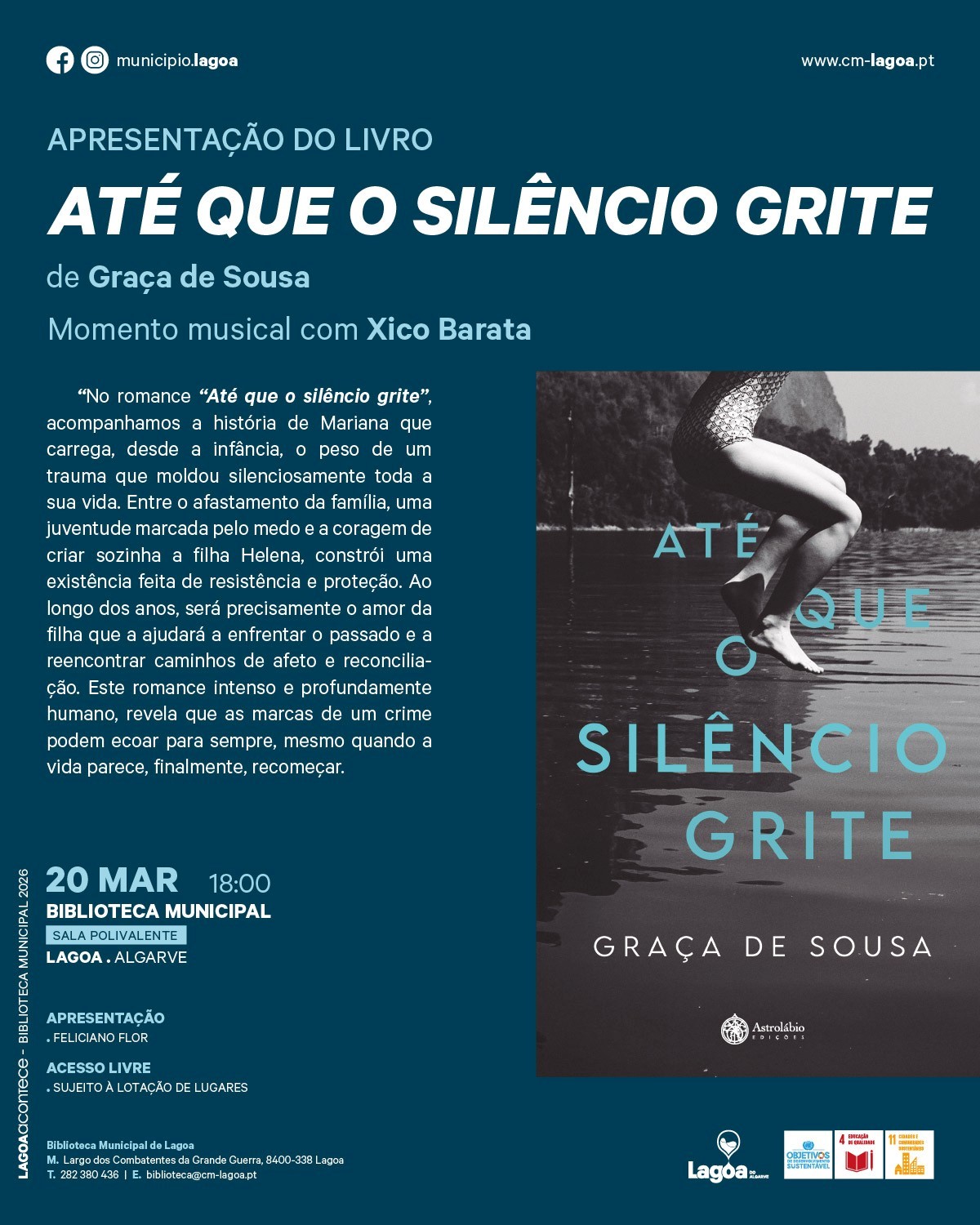 A Biblioteca Municipal recebe a apresentação do livro "Até que o silêncio grite", da autora Graça de Sousa, numa sessão apresentada por Feliciano Flor.