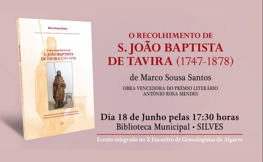 Às 17:30 horas, integrada no X Encontro de Genealogistas do Algarve, a realizar na Biblioteca Municipal de Silves, será apresentada a obra vencedora da 1.ª Edição do Prémio de História António Rosa Mendes, «O Recolhimento de S. João Baptista de Tavira (1747-1878)», de Marco Sousa Santos.