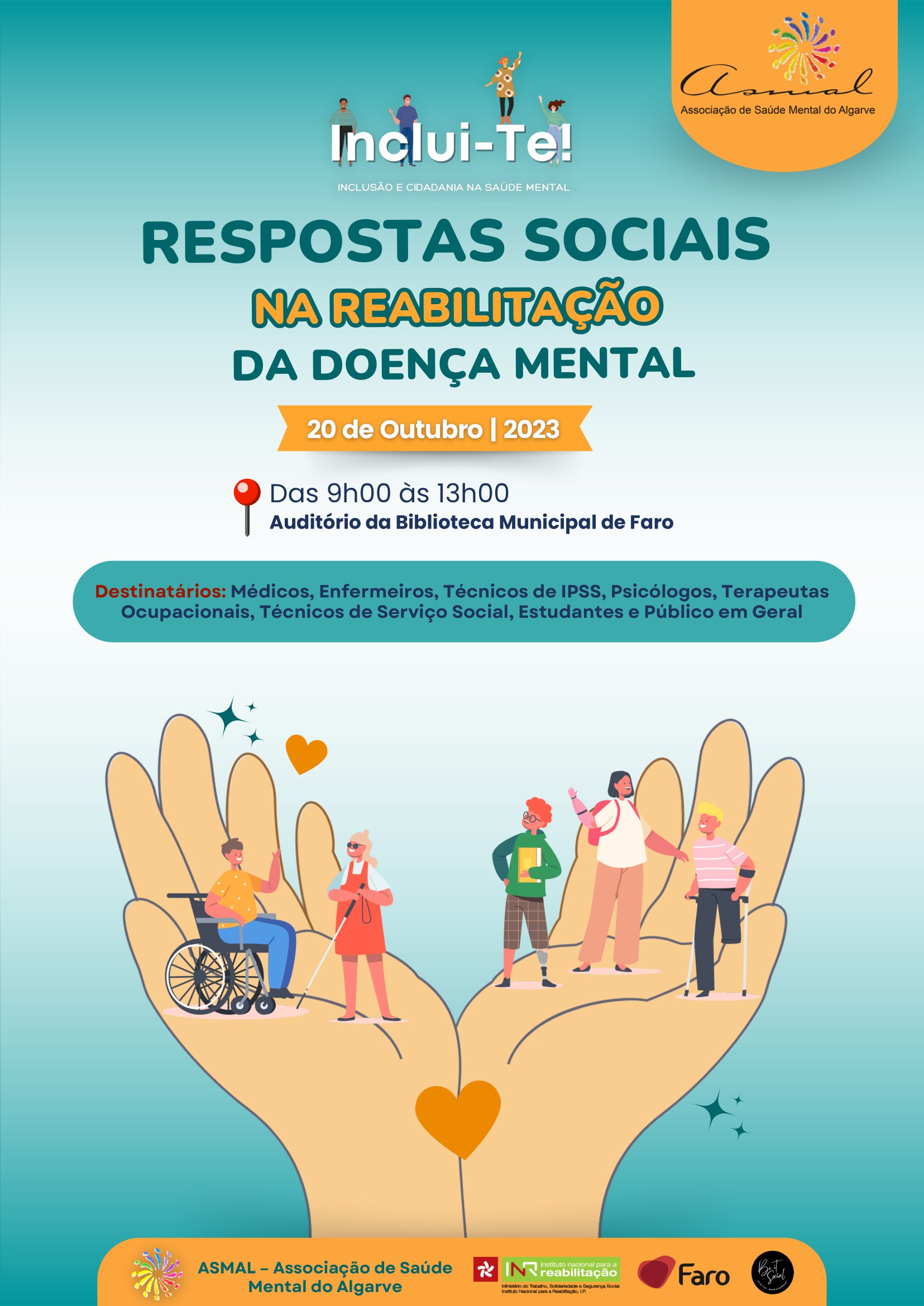 A Associação de Saúde Mental do Algarve (ASMAL) promove a iniciativa Respostas Sociais na Reabilitação da Doença Mental, no dia 20 de outubro – sexta-feira, entre as 9H00 e as 13H00, no Auditório da Biblioteca Municipal de Faro.