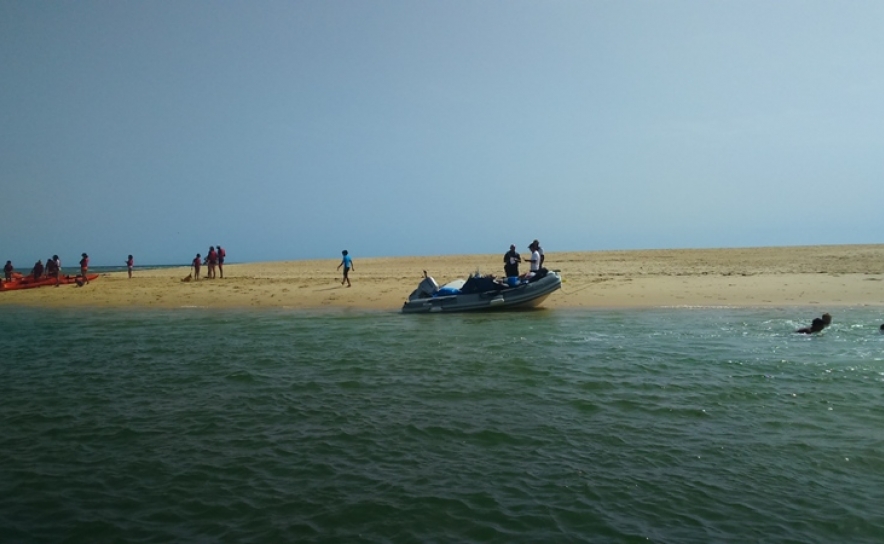 A chegada ao local deu-se por volta das 15h15, tendo-se verificado que os canoístas estavam todos bem, na margem e em segurança. Usando a mota, foram auxiliados quatro indivíduos que se encontravam na margem nascente da barrinha a virem para a margem poente.