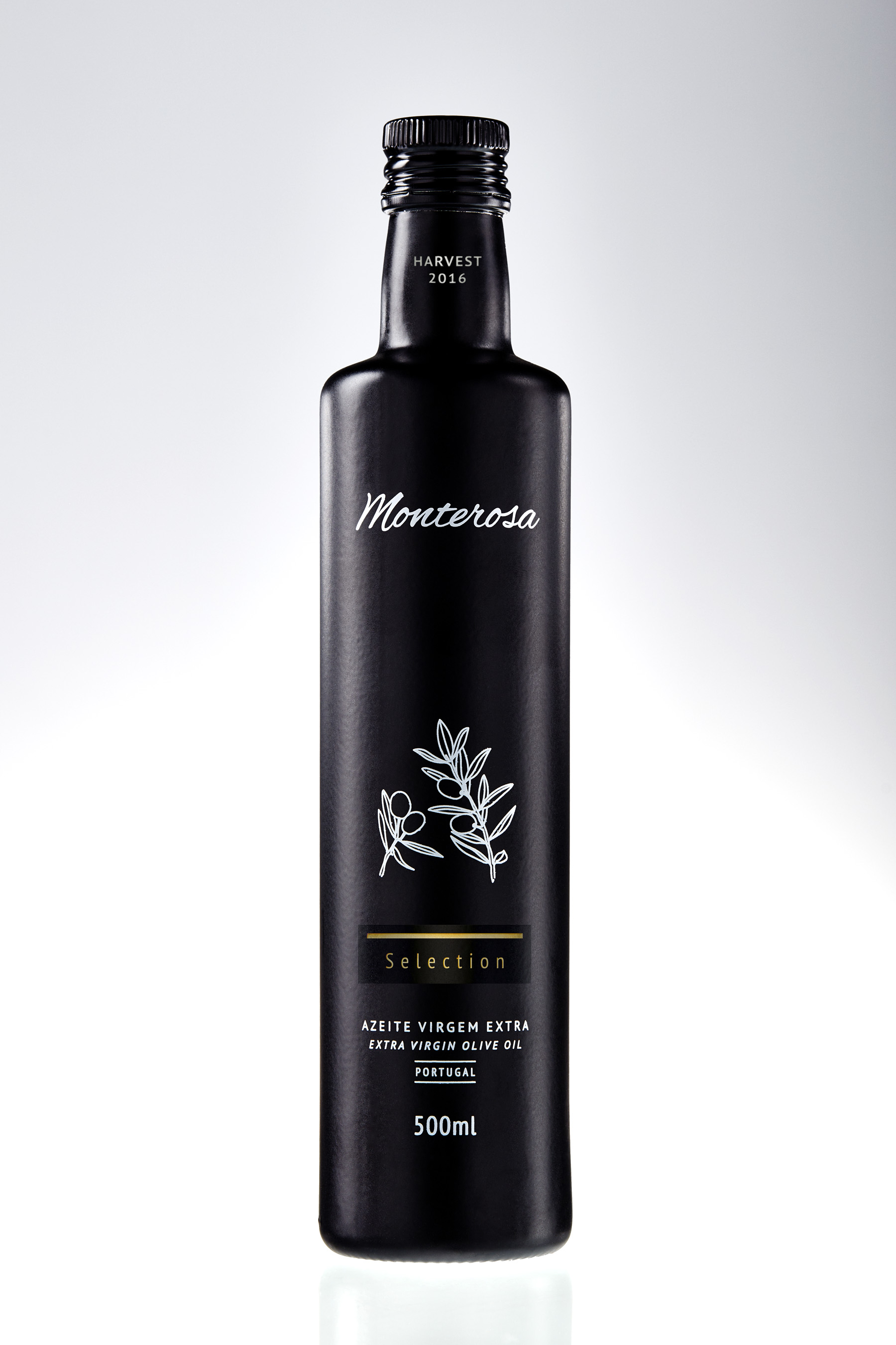 O Azeite Monterosa é comercializado numa garrafa de cor negra serigrafada de 500 e 250ml, assim como num kit de degustação com cinco garrafas de 20ml. À já habitual gama de monovarietais Maçanilha, Cobrançosa, Verdeal e Picual, junta-se ainda um Selection que é produzido com uma mistura de variedades devidamente seleccionadas pelo painel de provadores internos da equipa Monterosa. Destaca-se neste Selection a predominância da variedade Frantoio que é originalmente uma famosa variedade italiana que se tem vindo a estender por todo o mundo oleícola.