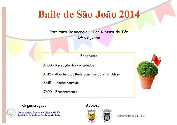 Gosta de dançar??? Venha ao Baile de S. João. Na Estrutura Residencial - Lar Ribeira da Tôr às 14h, no dia 24 de junho. Venha dançar! Contamos com a sua presença.