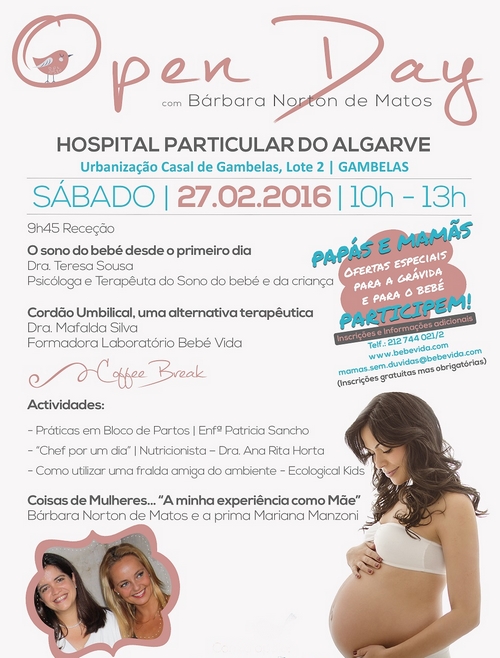 A BEBÉ VIDA apoia o Open Day do Hospital Particular do Algarve, uma iniciativa gratuita para pais e casais grávidos, a realizar-se no próximo dia 27 de fevereiro de 2016, das 10h às 13h, na Urbanização Casal de Gambelas, Lote 2, em Gambelas.