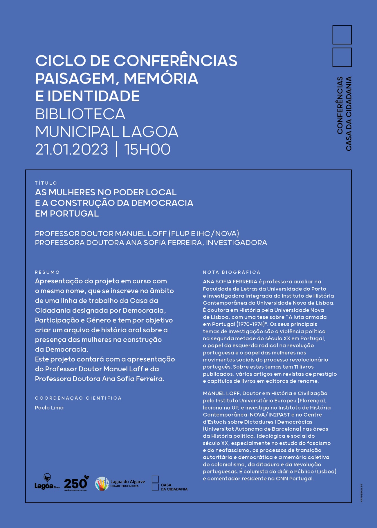 Aceite o convite e a marque presença nesta conferência, no próximo sábado, na Biblioteca Municipal de Lagoa.