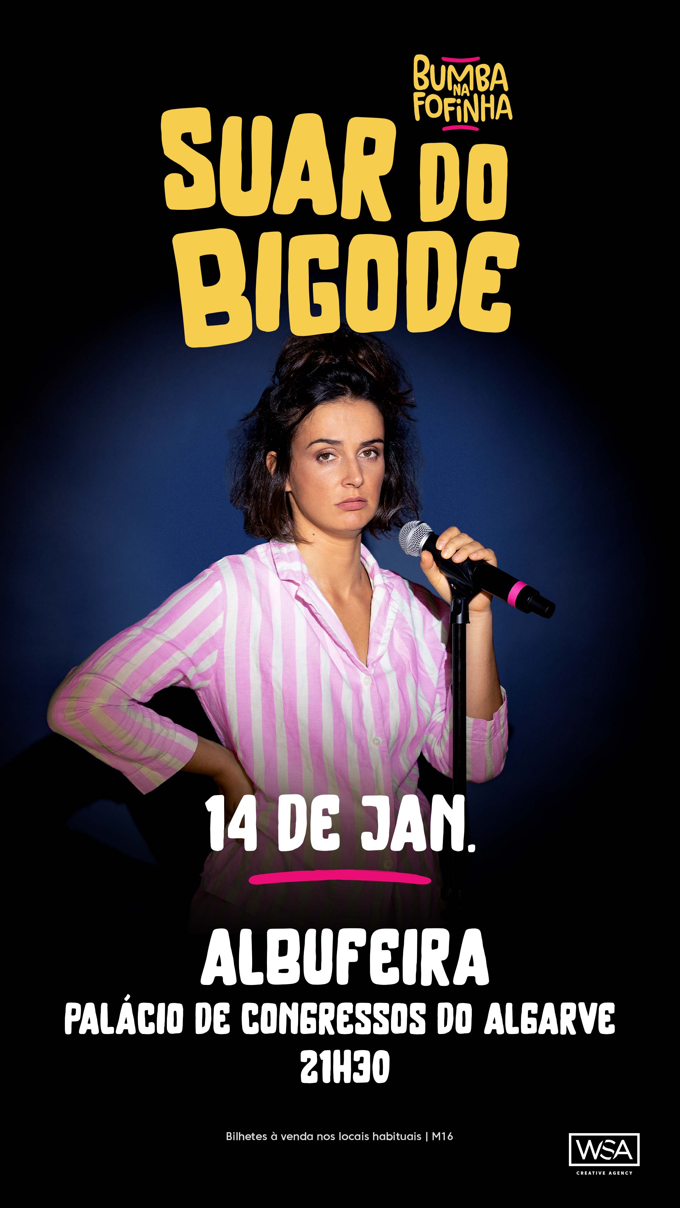 A humorista portuguesa Mariana Cabral, mais conhecida como Bumba na Fofinha, sobe ao palco do Palácio de Congressos do Algarve este sábado, 14 de janeiro, com o seu solo de comédia stand-up “Suar do Bigode”.