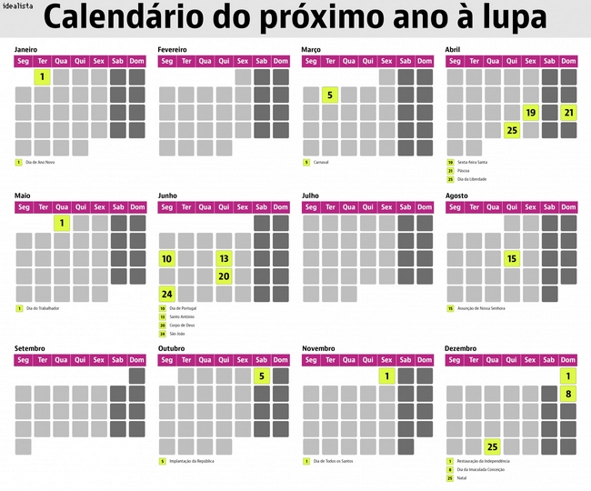 O melhor mesmo será espreitares o calendário de 2019 que o idealista/news preparou para saber como tirar partido das “pausas” que se avizinham.