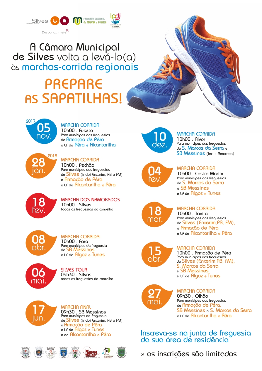 Fuseta, Alvor, Pechão, Castro Marim, Tavira, Faro, Armação de Pêra, Silves, SB Messines e Olhão, são as localidades onde os munícipes silvenses poderão participar através desta iniciativa, sendo duas dessas marchas - a Marcha dos Namorados, agendada para o dia 15 de fevereiro de 2018 e o “Silves Tour 2017”, agendado para o dia 6 de maio de 2018 - organizadas pela autarquia silvense.