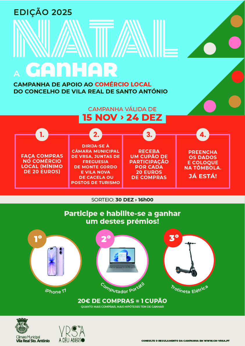 A lista de premiados será publicada no site oficial do município (www.cm-vrsa.pt), onde também está disponível o regulamento da campanha.