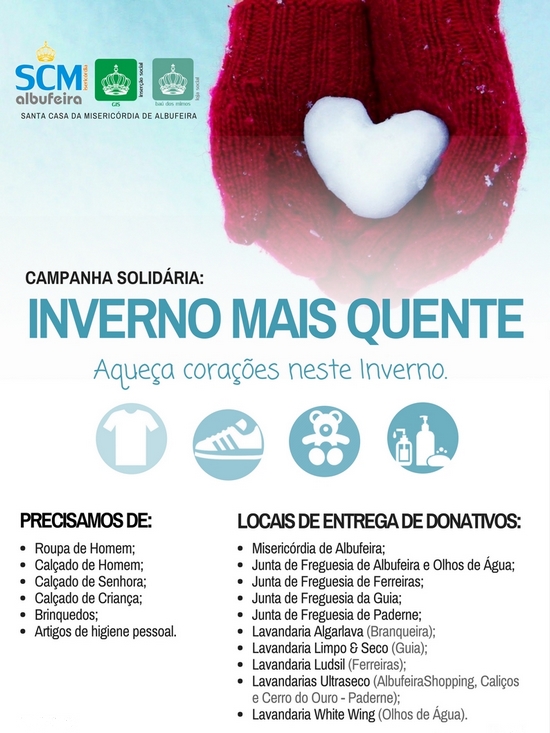 A Misericórdia de Albufeira, em parceria com as Juntas de Freguesia do concelho e 7 lavandarias locais, volta a promover a iniciativa solidária Inverno Mais Quente. A SCMA convida a comunidade a participar e apoiar as famílias carenciadas de Albufeira.