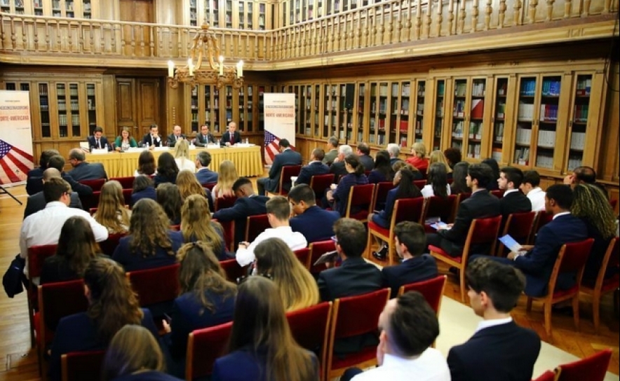 O presidente da Câmara Municipal de Albufeira liderou uma comitiva que se deslocou à Assembleia da República, na passada quarta-feira, para assistir à apresentação da obra “O Neoconservadorismo e a Política Externa Norte-Americana”, da autoria de Cristiano Cabrita. A sessão foi presidida pelo vice-presidente da Assembleia, José de Matos Correia, e contou com as intervenções dos Professores Doutores Lívia Franco e Tiago Moreira de Sá. Entre o público esteve uma turma de alunos do 12.º ano do curso de Turismo do Agrupamento de Escolas Albufeira Poente.