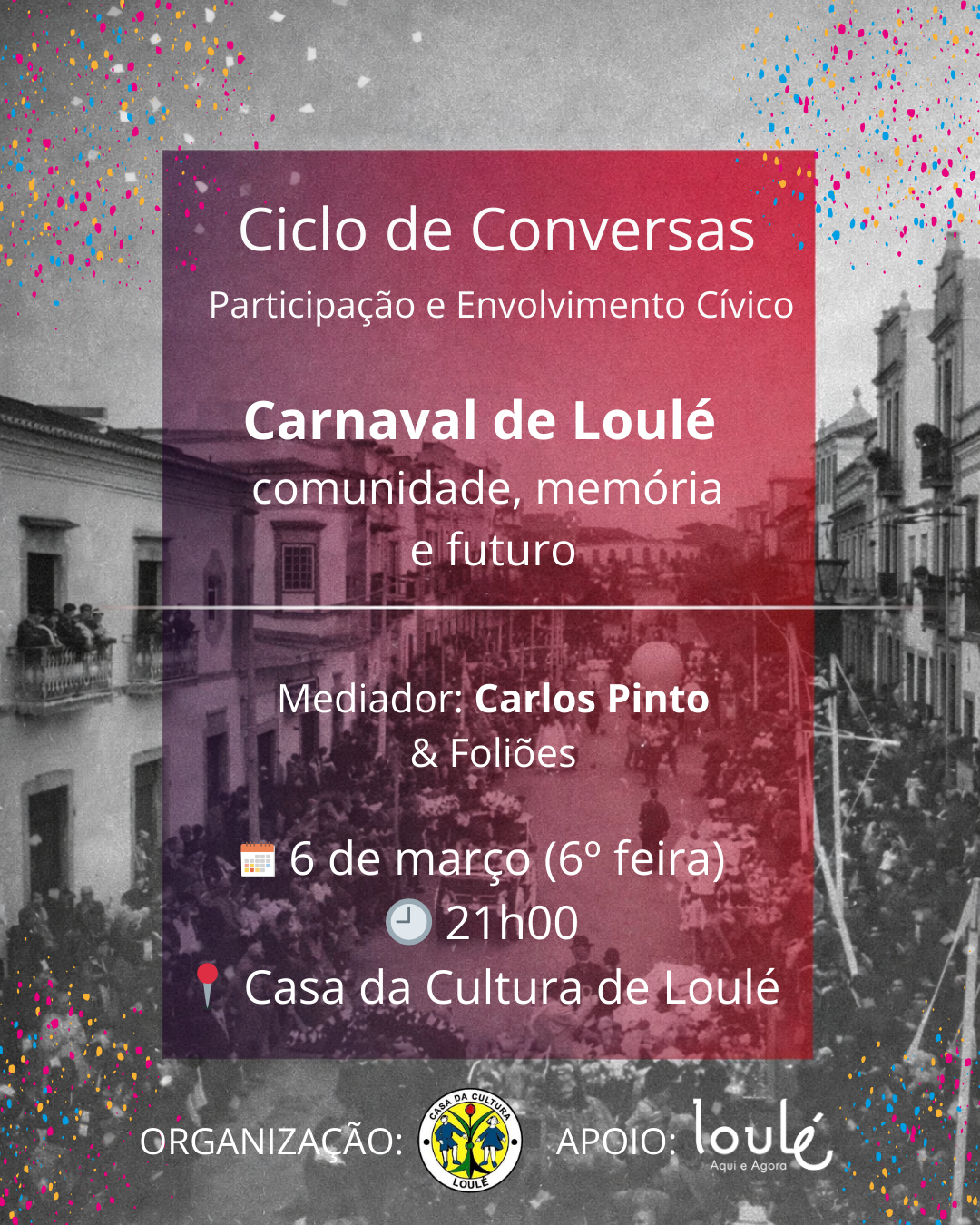 O Carnaval de Loulé é mais do que um desfile: é memória coletiva, identidade e pertença. Ao longo de mais de um século, transformou-se, organizou-se e reinventou-se, acompanhando as mudanças da cidade e da sua comunidade.