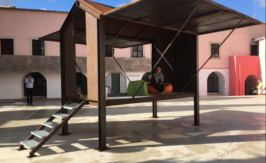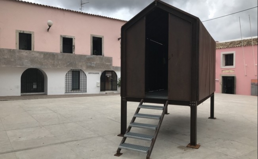 Uma parceria entre o Loulé Design Lab, a Divisão de Cultura, Bibliotecas e Arquivo da Câmara Municipal de Loulé e a Bienal Boca trouxe ao Algarve este palco de poucos metros quadrados, que partilha qualidades de abrigo, capela, estrebaria e permite múltiplas utilizações.
