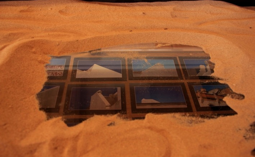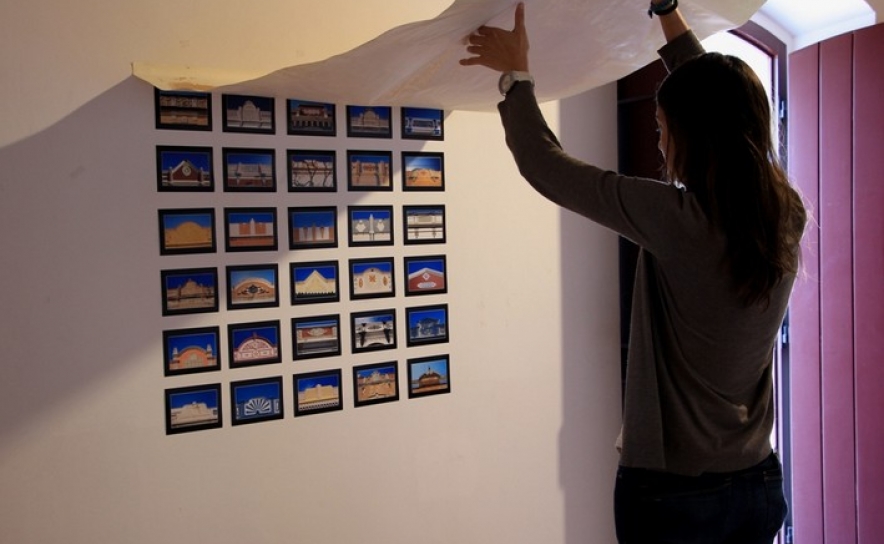 Dentro de expositores de vidro, cobertos por areia da praia, as fotografias revelaram aos visitantes um património arquitetónico esquecido, cuja memória nos é também trazida pelas palavras de Jacinto Palma Dias na apresentação do seu livro “Algarve em 3D”. “Entre 1900 e 1930 a arquitetura algarvia manifestou-se num movimento de alegria e entusiasmo, proveniente do desenvolvimento económico trazido pela criação do caminho-de-ferro para o Algarve [1906]”, relata o escritor, acrescentando que a região sofreu uma “revolução” hortofrutícola que fornecia Lisboa com quase um mês de antecedência em relação a outros produtores. Com a I Guerra Mundial (1914-1918), a indústria conserveira algarvia cresce a olhos vistos e a riqueza trazida pela exportação de conservas espelha-se na construção das casas algarvias, extrovertidas e ricas em detalhes arquitetónicos. Mas este “boom” económico trazia no entanto uma contrapartida, a dependência dos ciclos económicos mundiais e com a Grande Depressão, em 1929, a prosperidade algarvia foi ao fundo. E foi assim, “vazio, morto”, nas palavras de Jacinto Palma Dias, que o turismo encontrou a região na década de 60. “Não tenho nada contra o turismo de sol e praia, só acho que é preciso abrir outras janelas”, refere também o escritor. Sobre o mesmo, Filipe da Palma salienta “este turismo de massas está a apagar o pouco que ainda resiste, estas imagens da exposição estão a desaparecer dia a dia”.