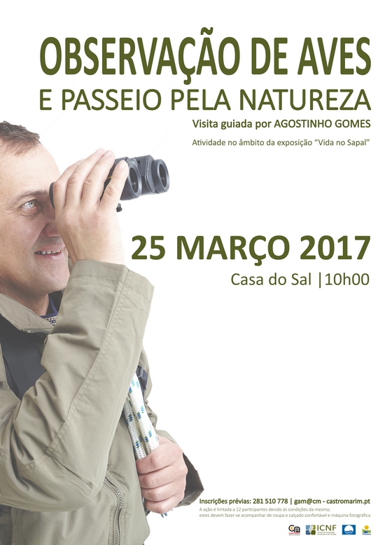 Com ponto de encontro na Casa do Sal, esta ação é gratuita mas limitada a 12 participantes, podendo efetuar a sua inscrição no Gabinete de Apoio ao Munícipe (GAM) ou através dos contactos: 281 510 778 | gam@cm-castromarim.pt. Para participar só precisa de roupa e calçado confortável e de uma máquina fotográfica, para relembrar os melhores momentos que, com certeza, vai poder apreciar, já que a Reserva natural do Sapal de Castro Marim e Vila Real de Santo António (RNSCMVRSA) é a reserva com o maior número de espécies de aves do país.