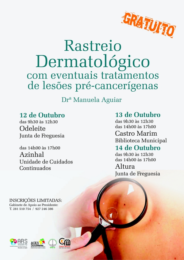 Os serviços clínicos são prestados pela médica dermatologista Dr.ª Manuela Aguiar e pela enfermeira Cristina Macedo que, voluntariamente, têm colaborado com esta ação, promovendo a descoberta precoce e tratamento atempado de cancros da pele ainda em fase inicial, encaminhados com urgência para o Hospital de Faro.