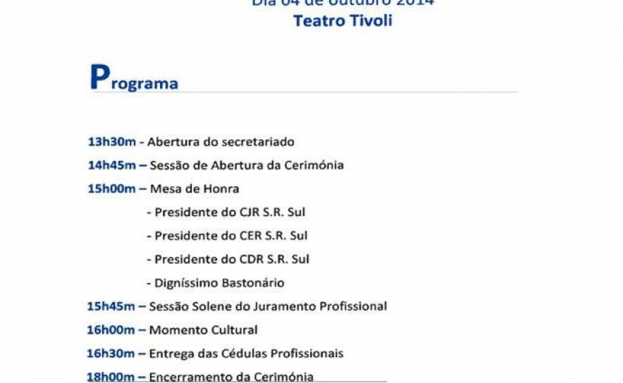 A cerimónia conta com a presença Bastonário da Ordem dos Enfermeiros, Germano Couto, que fará a entrega nominal das cédulas profissionais a 706 jovens licenciados, que ficam assim habilitados a exercer em Portugal. Presentes estarão também Maria Antónia Almeida Santos, Presidente da Comissão Parlamentar de Saúde na Assembleia da República; Vanda Lopes Costa Marques Pinto, Presidente do Conselho Pedagógico da Escola Superior de Enfermagem de Lisboa;Óscar Ferreira, Presidente da Associação Nacional de História de Enfermagem – ANHE; e José Alberto Robalo, Presidente da ARS Alentejo,entre outras figuras de destaque na área da saúde.Além da entrega de cédulas profissionais, este evento, que se realiza em todas as secções regionais, é um ato simbólico para acolher os novos profissionais,dar a conhecer a Ordem dos Enfermeiros aos membros mais recentes e incentivar o vínculo dos jovens enfermeiros à profissão.