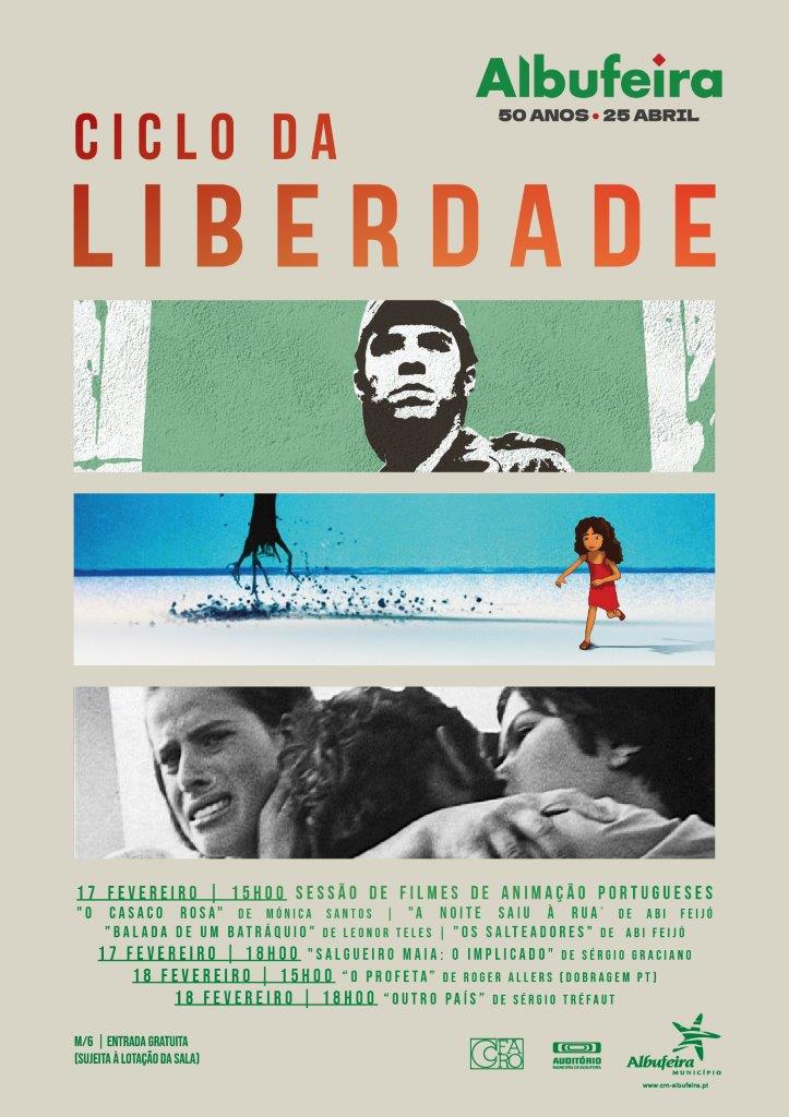 “Ciclo da Liberdade” é o nome do novo projeto do Município de Albufeira. Trata-se de um evento que nos dias 17 e 18 de fevereiro traz até ao Auditório Municipal do concelho o melhor da 7.ª Arte, numa iniciativa que abre as comemorações da autarquia no âmbito dos 50 anos do 25 de Abril.