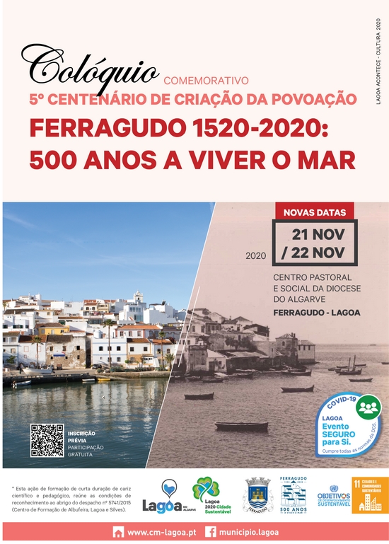 Na sequência desta limitação, a Câmara Municipal de Lagoa e a Junta de Freguesia de Ferragudo tomam a decisão de adiar o Colóquio comemorativo do 5º Centenário de criação da povoação de Ferragudo – Ferragudo 1520-2020: 500 anos a Viver o Mar para os dias 21 e 22 de novembro de 2020.