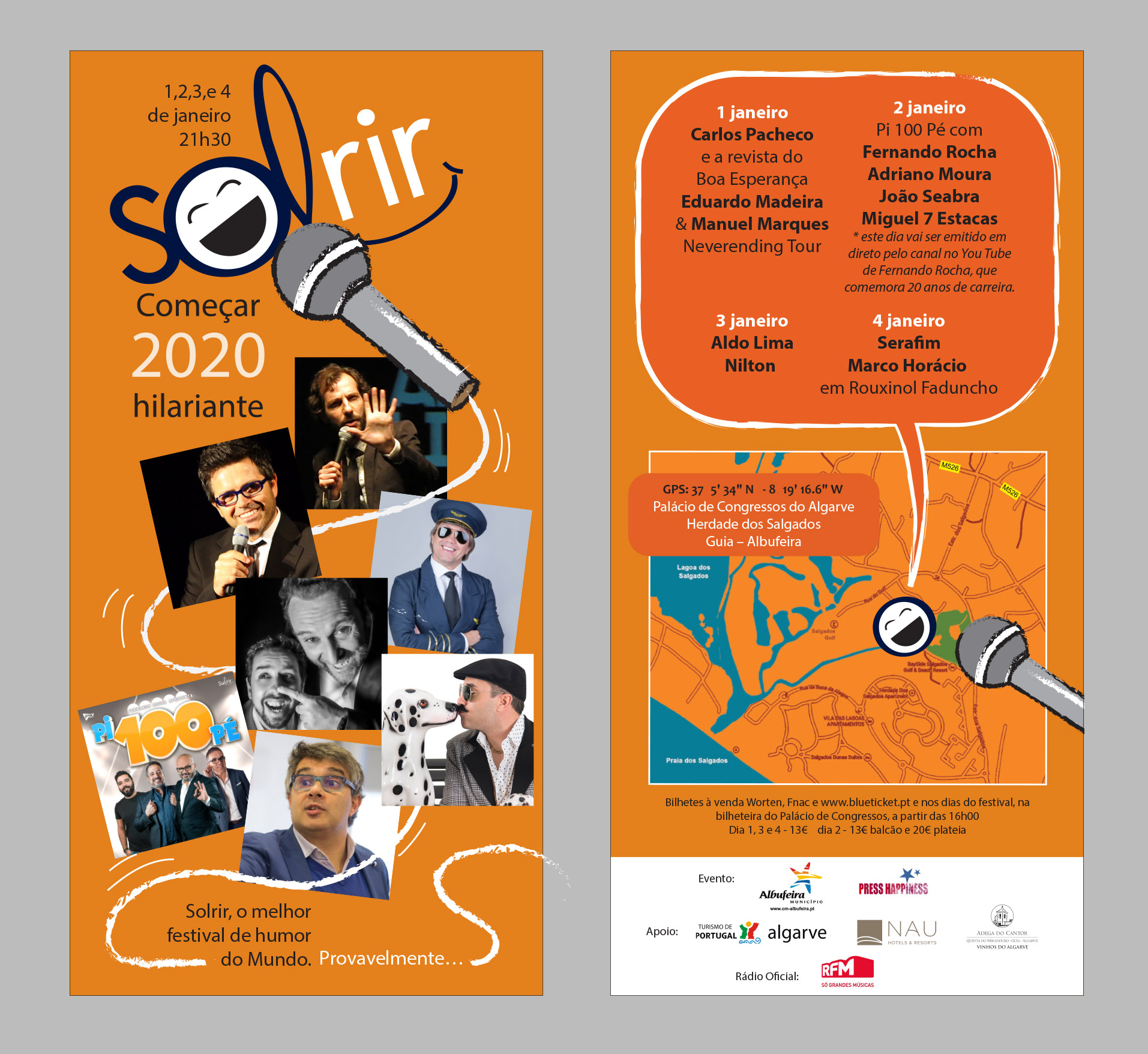 Albufeira vai entrar em 2020 com boa disposição e muitas gargalhadas. O Solrir – o Festival de humor mais mediático do País - está de regresso ao Palácio de Congressos do Algarve, na Herdade dos Salgados, de 1 a 4 de janeiro, pelas 21h30, para apresentar os comediantes mais consagrados a nível nacional e algumas novas revelações. 0s bilhetes estão à venda na Worten, FNAC, Blueticket e nos dias do Festival, na bilheteira do Palácio de Congressos, a partir das 16h00.