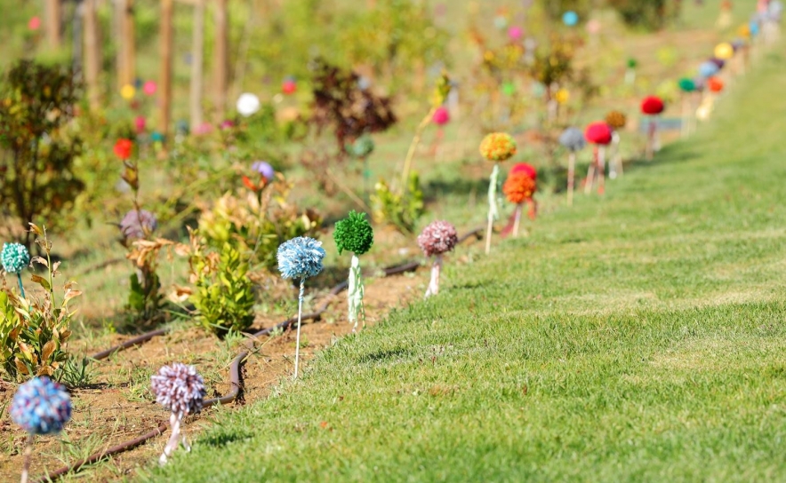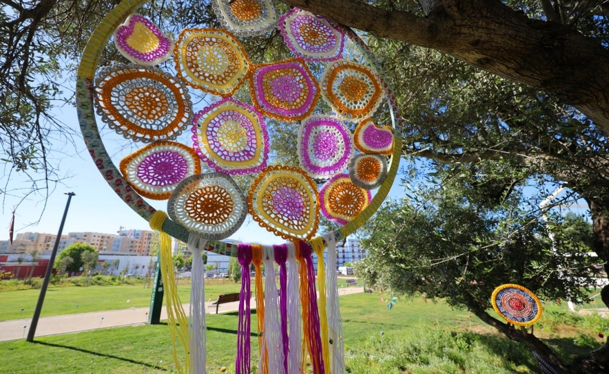 Os trabalhos agora instalados no jardim resultam de atividades de expressão artística e manual, como bricolage, croché e pintura, desenvolvidas nos diferentes centros, envolvendo moradores de várias faixas etárias.