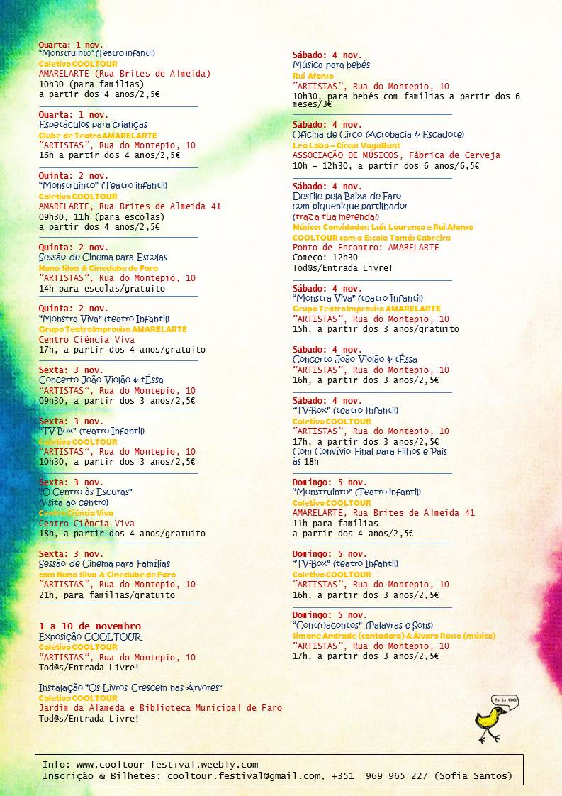 De 1 e 5 de Novembro haverá um belíssimo programa cultural para crianças em Faro. O tema do festival este ano é Monstros & Medos...