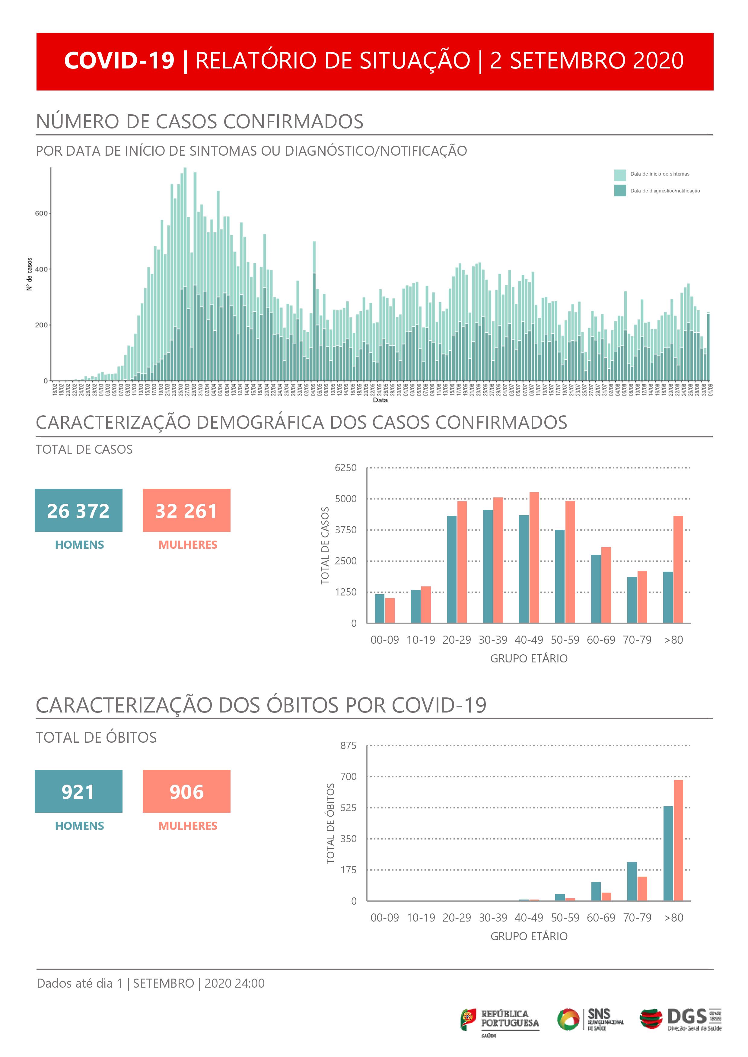 No total, o novo coronavírus afetou em Portugal pelo menos 26.372 homens e 32.261 mulheres, de acordo com os casos declarados.