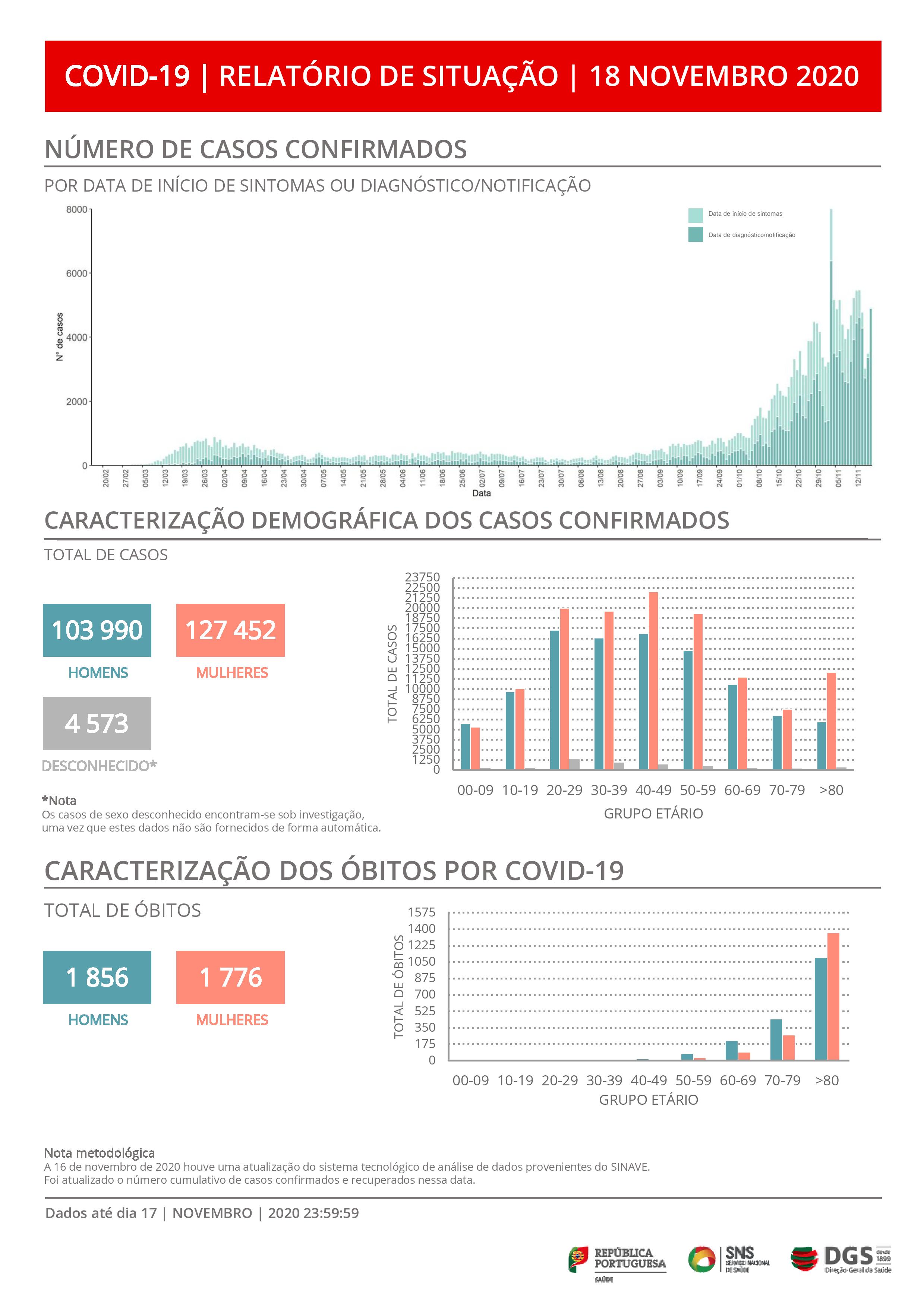 O boletim de hoje refere que há 4.573 casos confirmados de sexos desconhecidos que se encontram sob investigação, uma vez que estes dados não são fornecidos de uma forma automática.