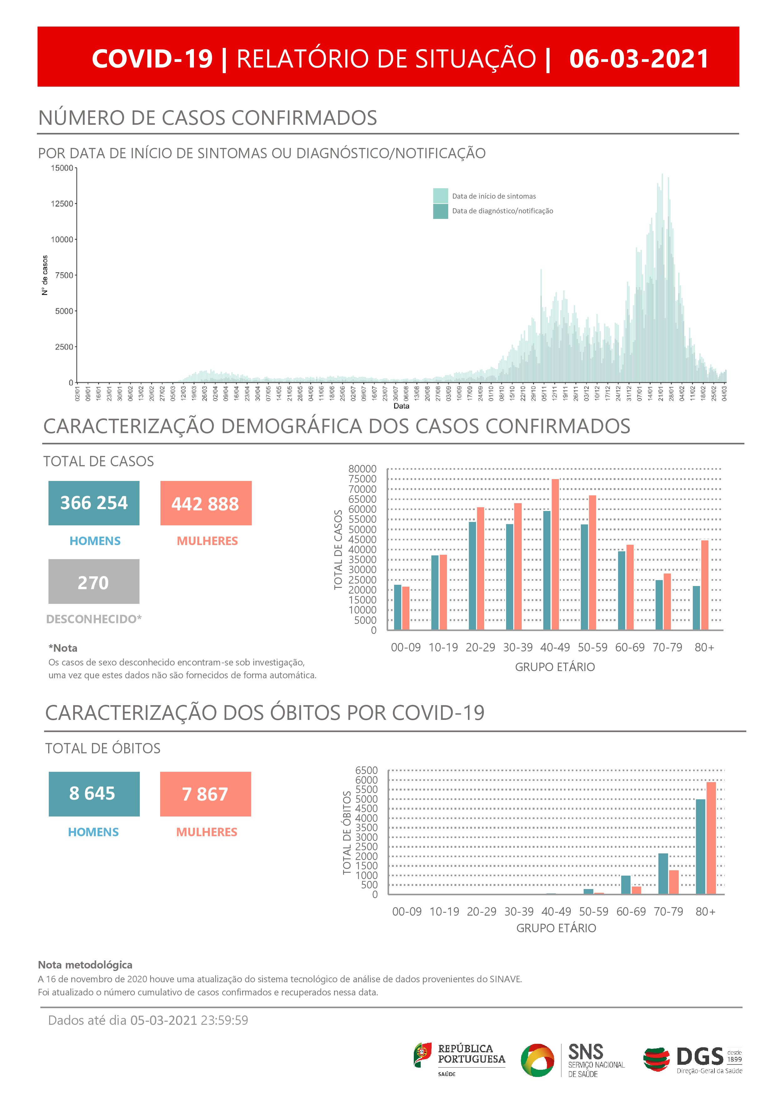 Do total de casos confirmados, 442.888 são mulheres, 366.254 são homens e os restantes 270 estão sob investigação, uma vez que os dados “são fornecidos de forma automática”.
