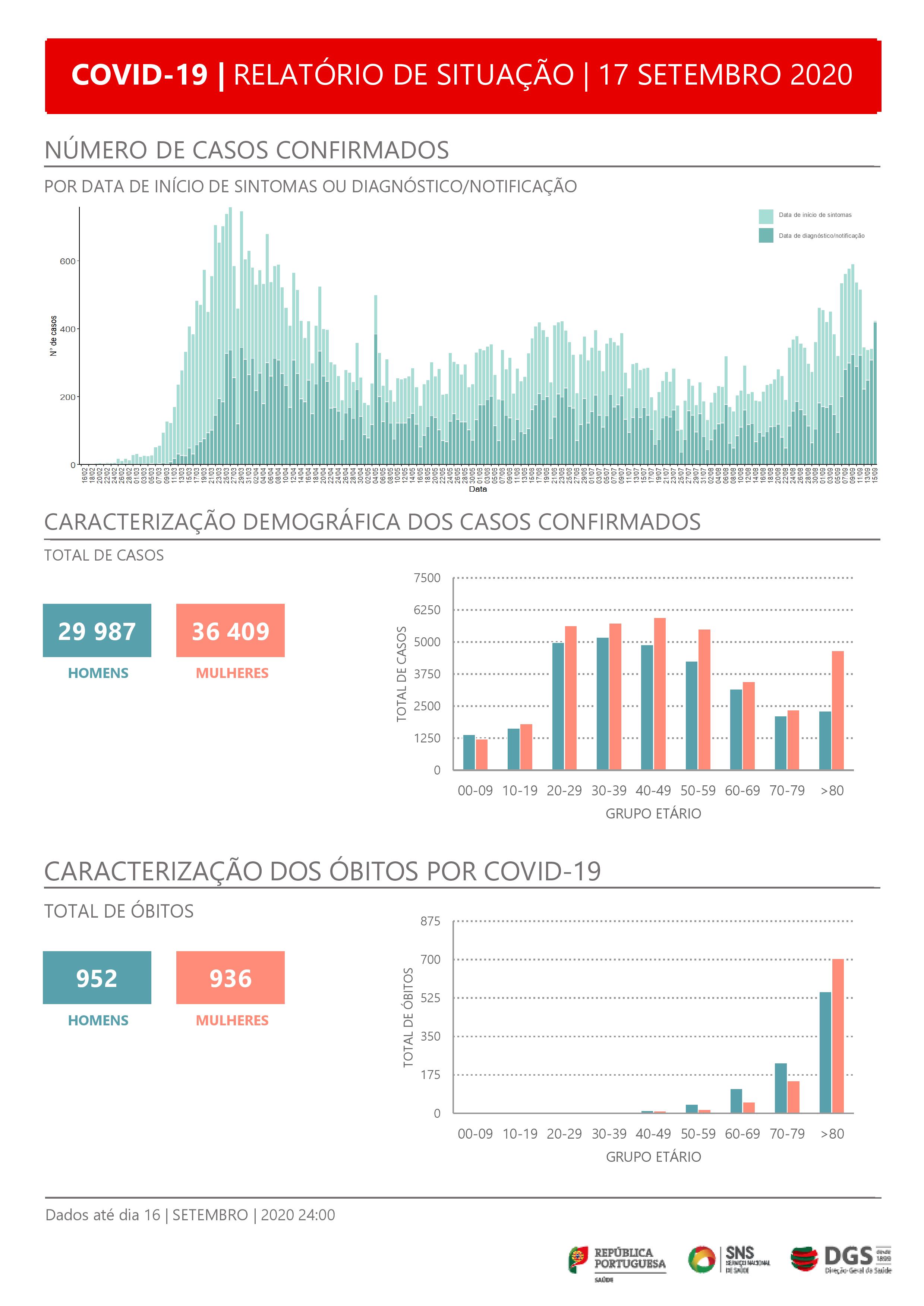 No total, o novo coronavírus já afetou em Portugal pelo menos 29.987 homens e 36.409 mulheres, de acordo com os casos declarados.