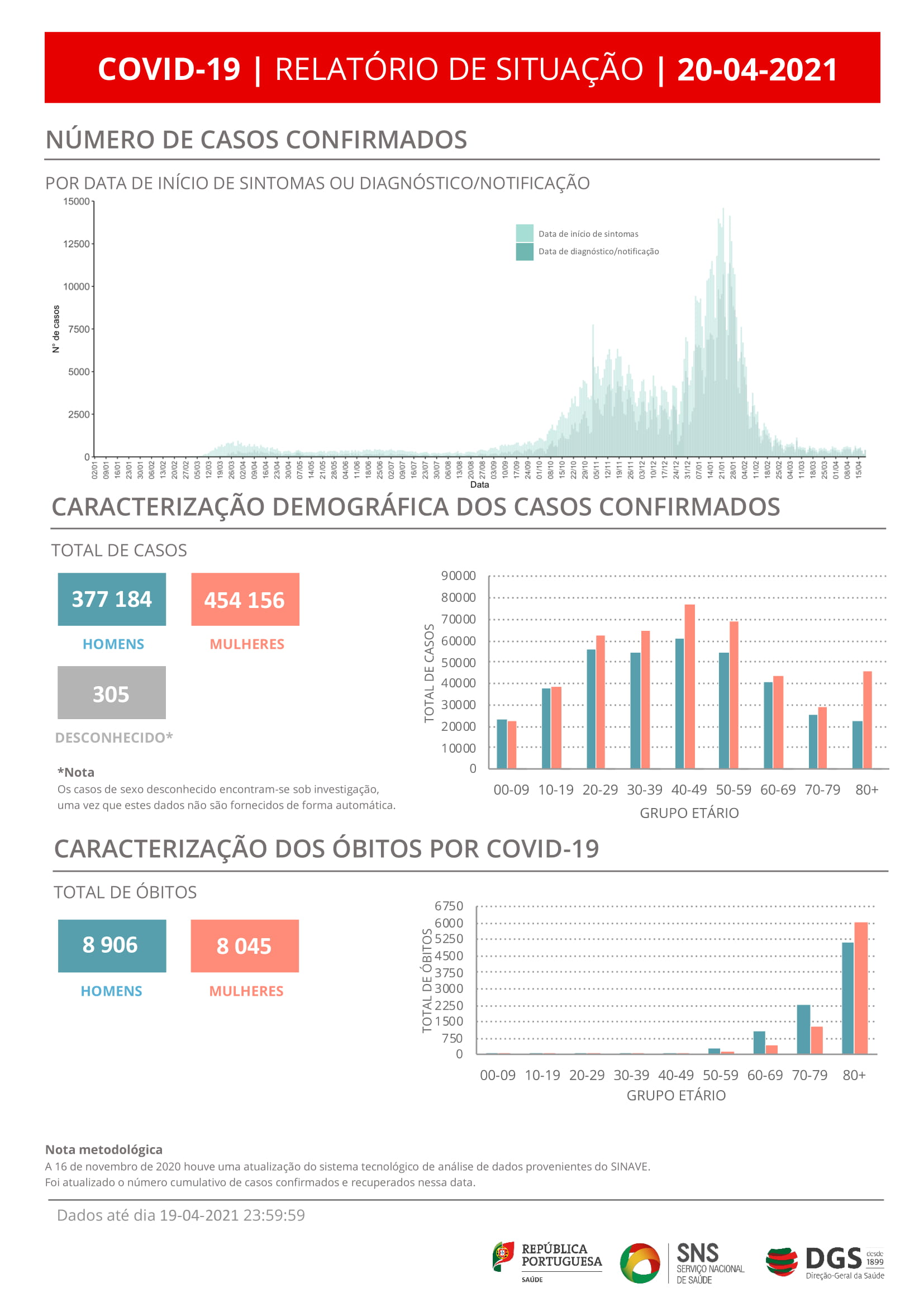 O novo coronavírus já infetou em Portugal pelo menos 454.156 mulheres e 377.184 homens, mostram os dados da DGS, segundo os quais há 305 casos de sexo desconhecido, que se encontram sob investigação, uma vez que esta informação não é fornecida de forma automática.