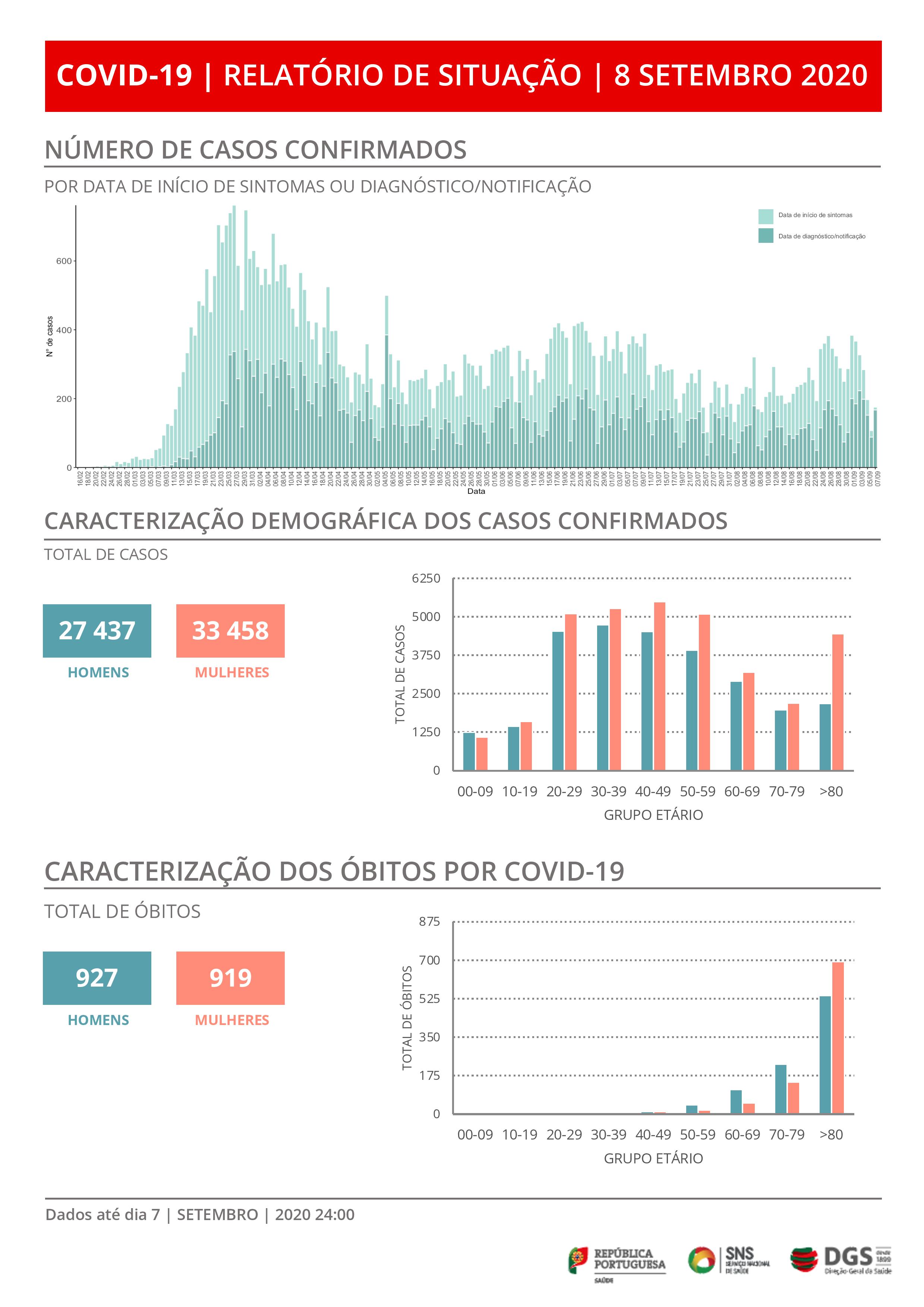 No total, o novo coronavírus afetou em Portugal pelo menos 27.437 homens e 33.458 mulheres, de acordo com os casos declarados.
