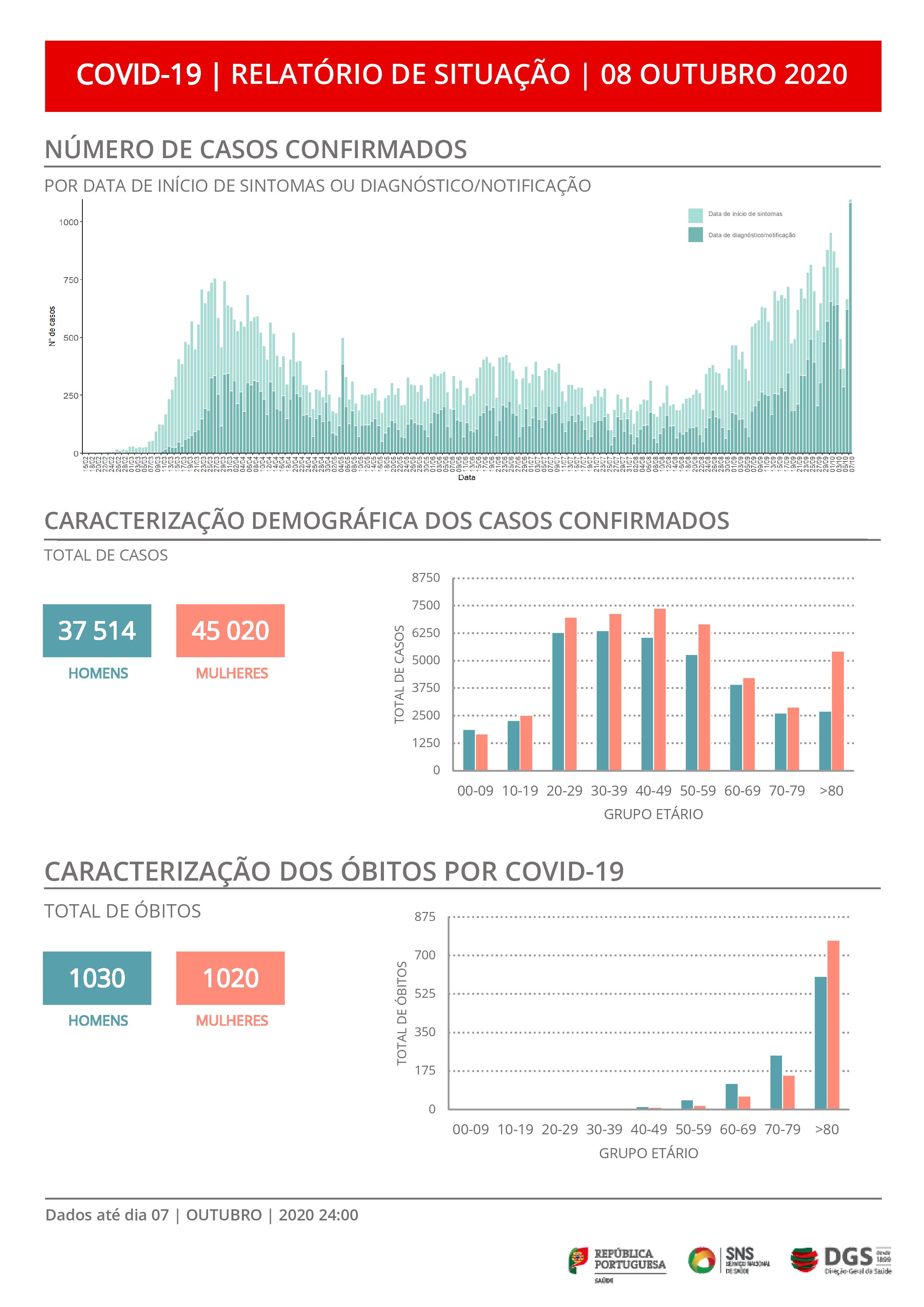 Os casos confirmados distribuem-se por todas as faixas etárias, situando-se entre os 20 e os 59 anos o registo de maior número de infeções. A faixa etária 40 e os 49 é a que regista o valor mais elevado.