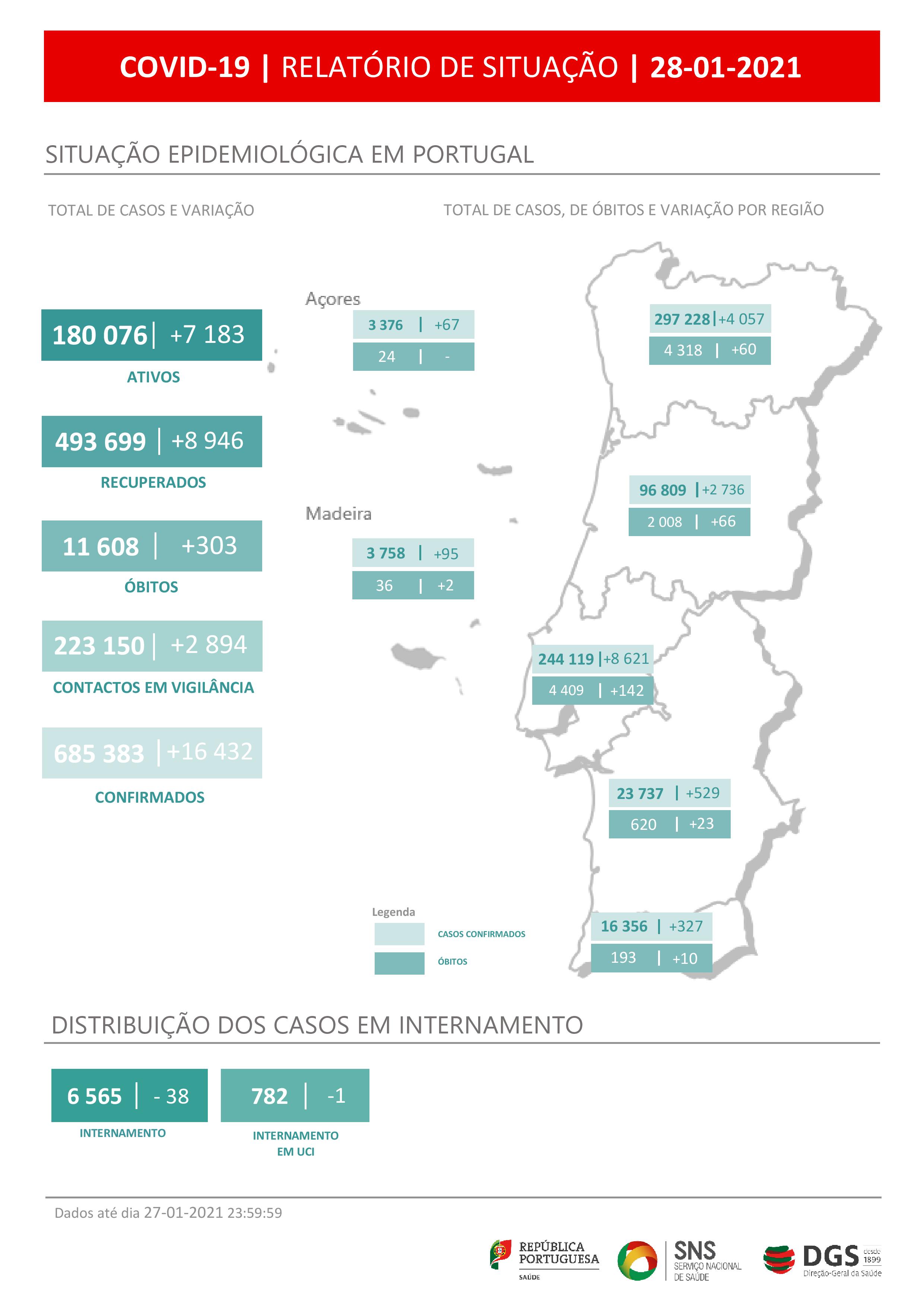 Portugal atingiu hoje novos máximos diários ao registar 303 mortes relacionadas com a covid-19 e 16.432 casos de infeção com o novo coronavirus, segundo a Direção-Geral da Saúde (DGS).