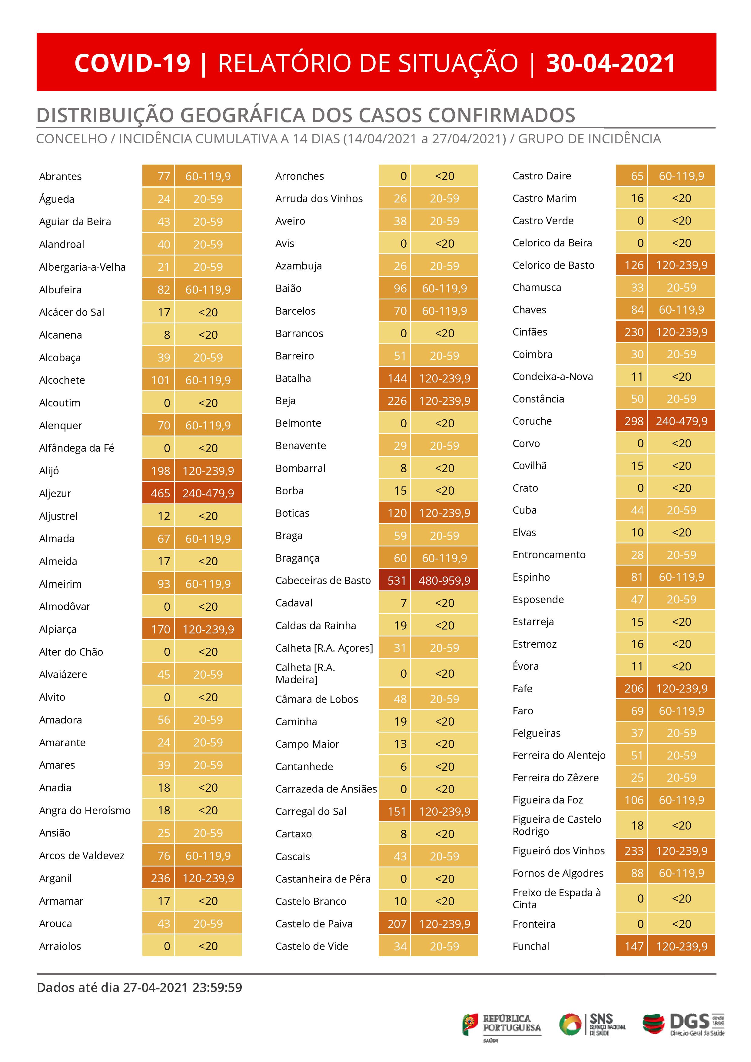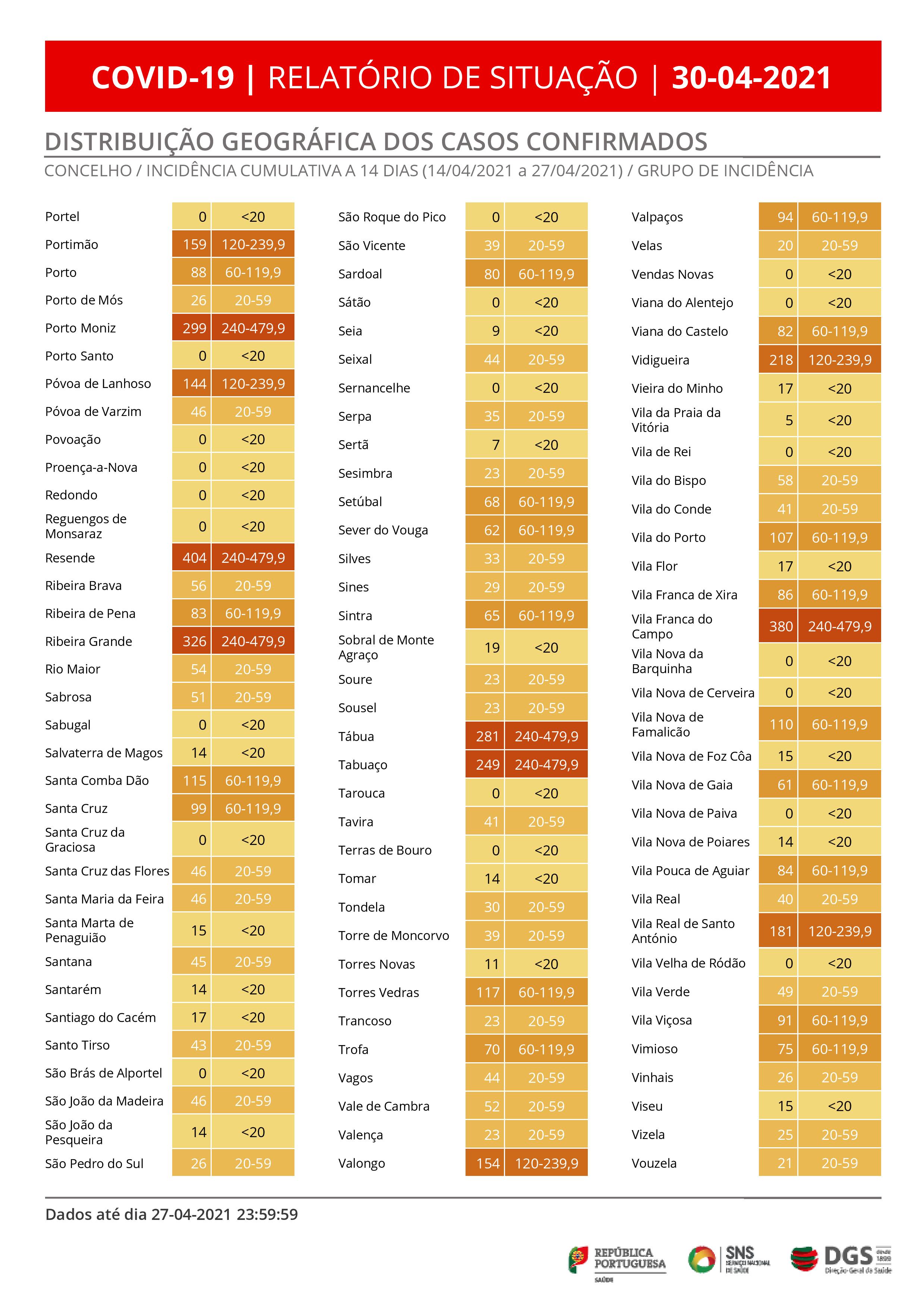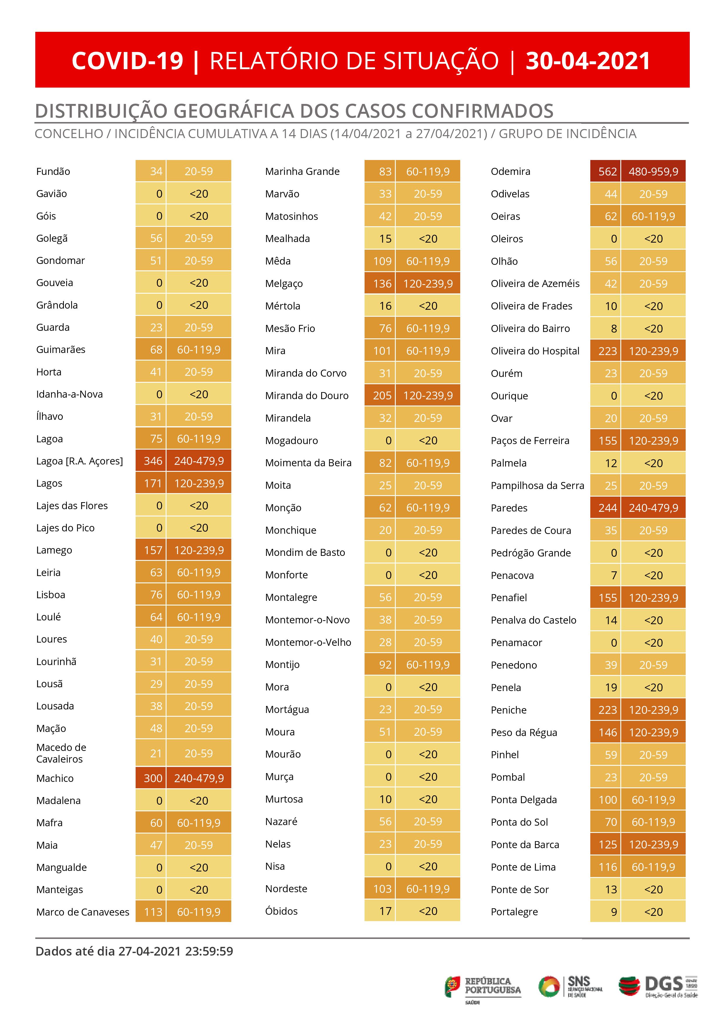 Na região do Algarve o boletim de hoje revela que foram registados 37 novos casos, acumulando-se 21.669 infeções e 357 mortos.