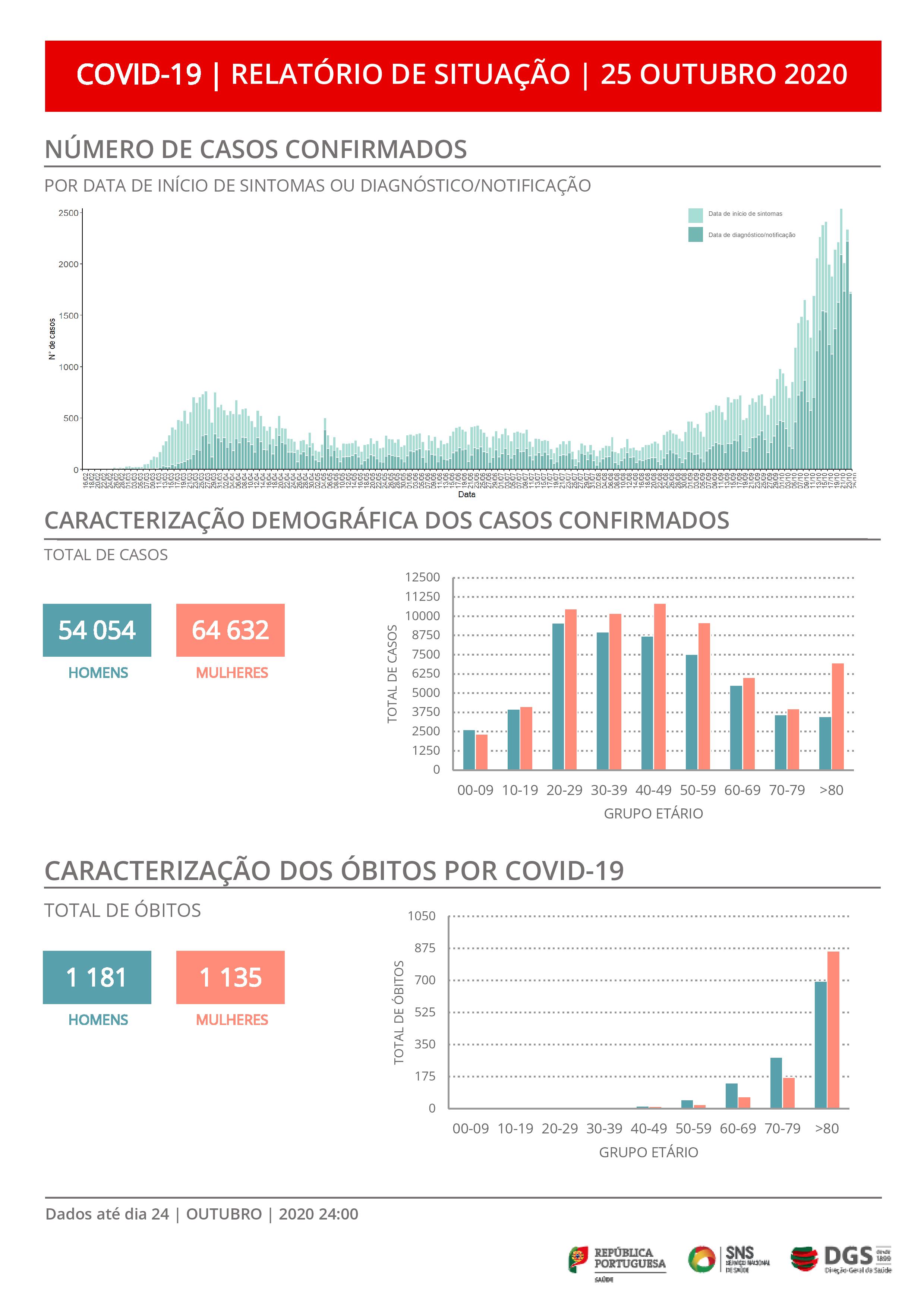 No total, o novo coronavírus já afetou em Portugal pelo menos 54.054 homens e 64.632 mulheres, de acordo com os casos declarados.