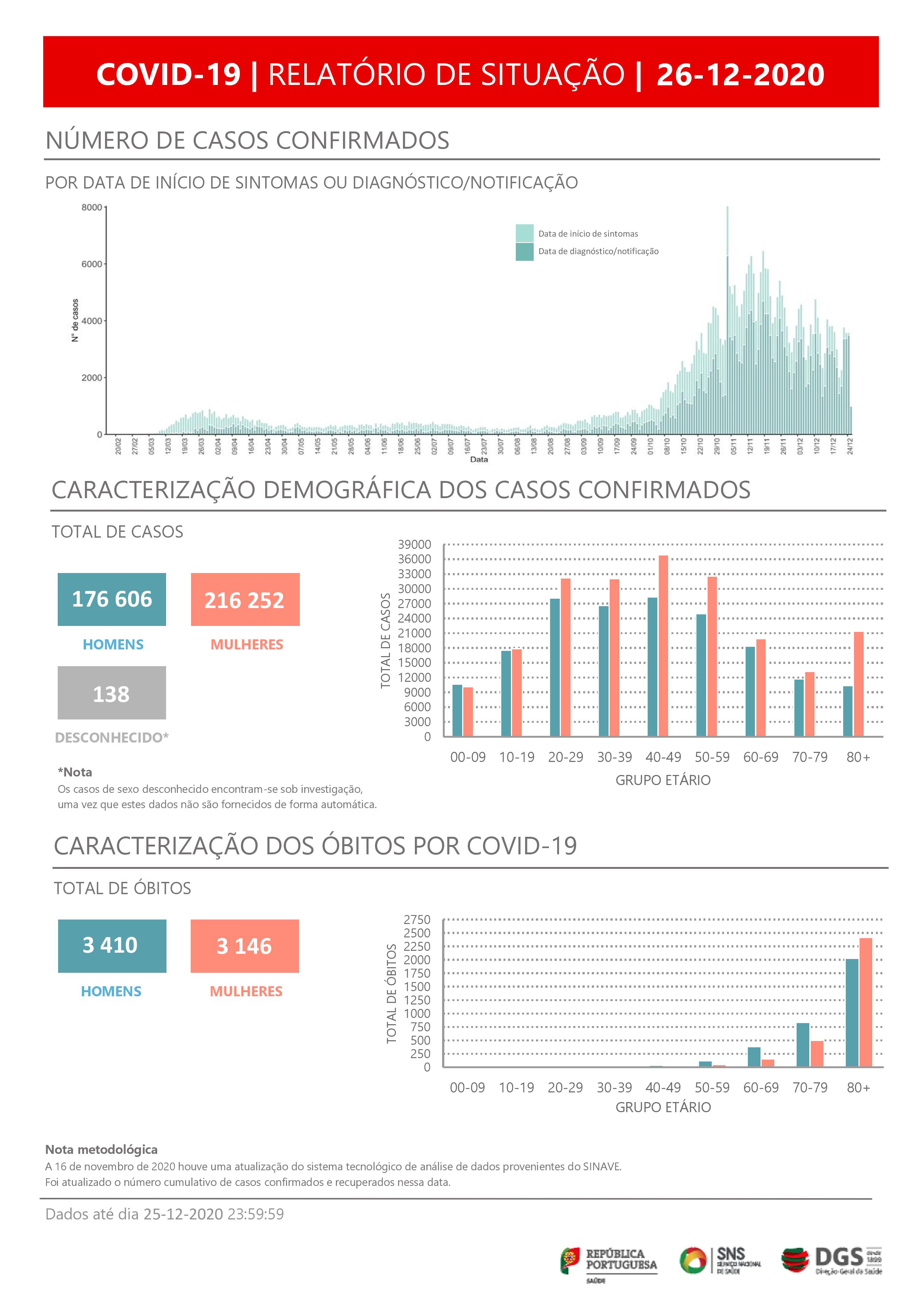 O novo coronavírus já infetou em Portugal pelo menos 176.606 homens e 216.252 mulheres, referem os dados da DGS, segundo os quais há 138 casos de sexo desconhecido, que se encontram sob investigação, uma vez que estes dados não são fornecidos de forma automática.