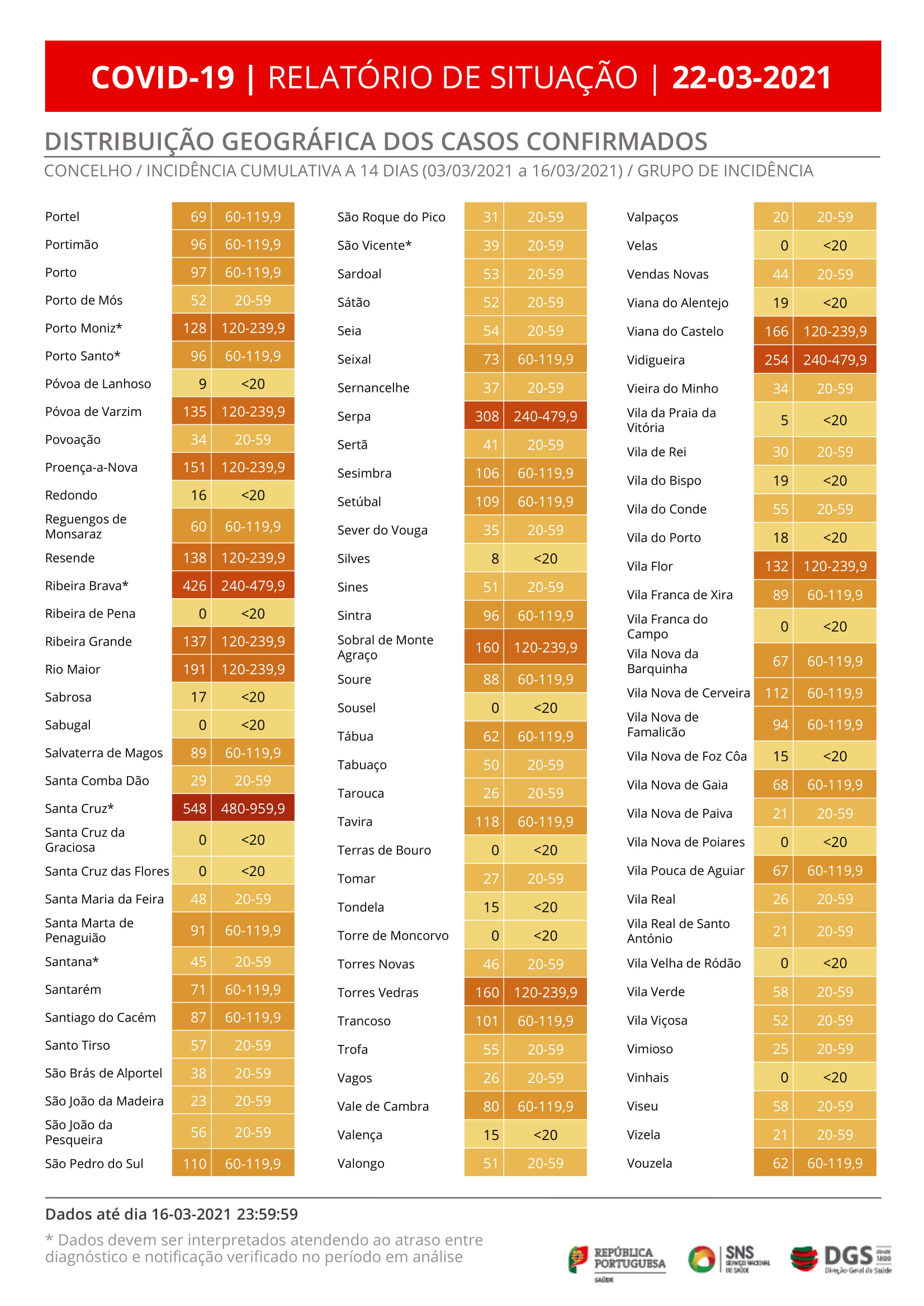 Os casos confirmados distribuem-se por todas as faixas etárias, situando-se entre os 20 e os 59 anos o registo de maior número de infeções.